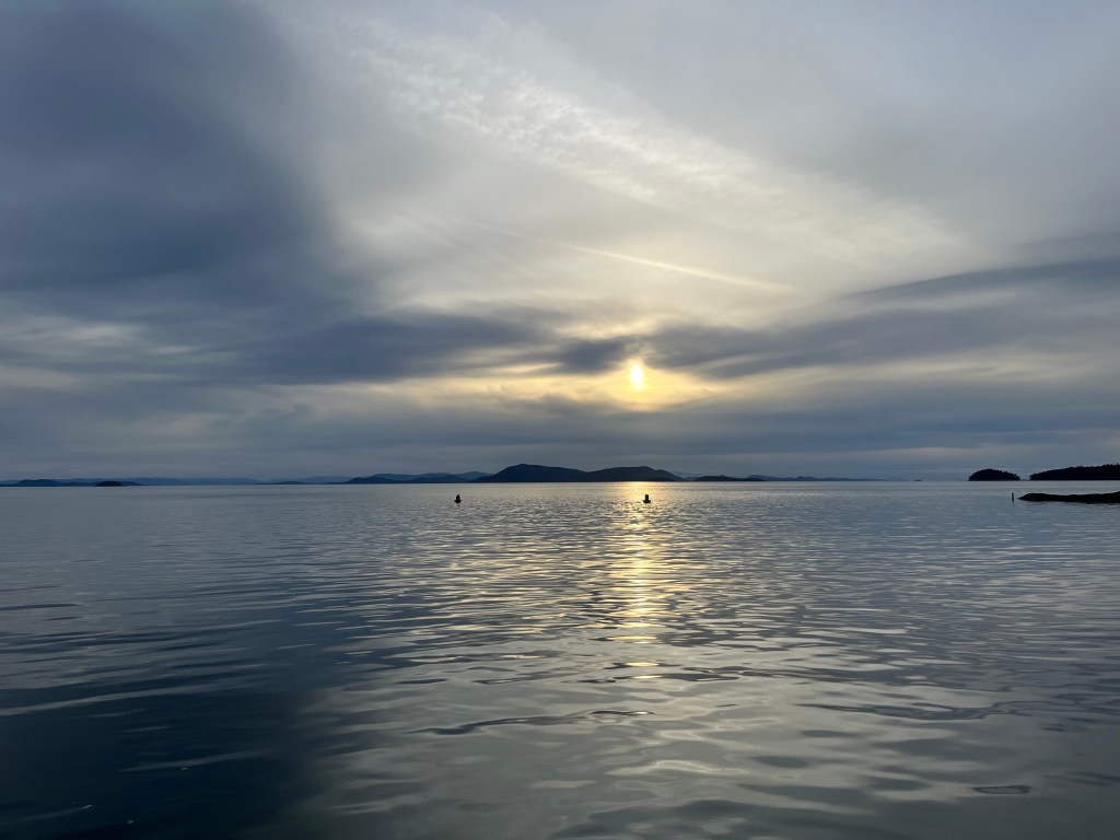 We entered Shallow Bay on Sucia Island in the late afternoon as clouds were rolling in. There were four other boats in the little bay, which surprised me given we hadn’t seen this many in the San Juans so far this year. We anchored not far inside the channel markers for the bay to leave room from the other boats anchored further in.