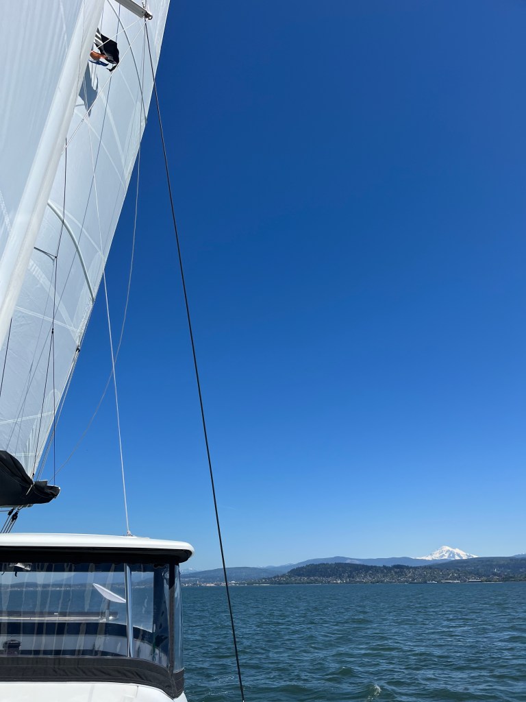 With the full crew on board, we were finally ready to leave on our northward journey. Our high-level plans were to head over to Canada’s Gulf Islands, travel north maybe as far as Nanaimo, then hop over to the east side of the Strait of Georgia. Grace has tickets to see one of her favorite authors in Vancouver on May 22nd, and we wanted to be in the city over the preceding weekend to do some sightseeing.
