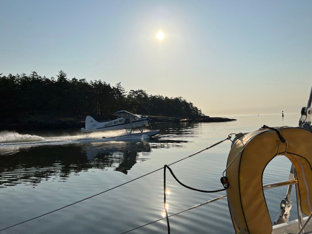 I made a joking comment about our noisy neighbor and karma soon rewarded me a very noisy floatplane. There are two floatplane lanes in Silva Bay which were devoid of boats, but are apparently used for taxiing only. They seemed much happier landing in the small channel where we’d anchored. We’d get a plane in and out every hour or so, hopefully the pilots were not too annoyed at our presence!
