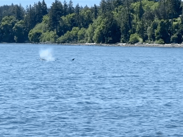 As we approached the narrows, a boat well ahead of us called out that they were in the narrows and a pod of orca was transiting from north to south. He had paused his transit to try and give the whales more room to pass. At the advice of the SJS flotilla lead we all pulled to the east side of the narrows as well to let them pass with as much space as possible. Melinda was able to get some nice video of the whales as they passed.