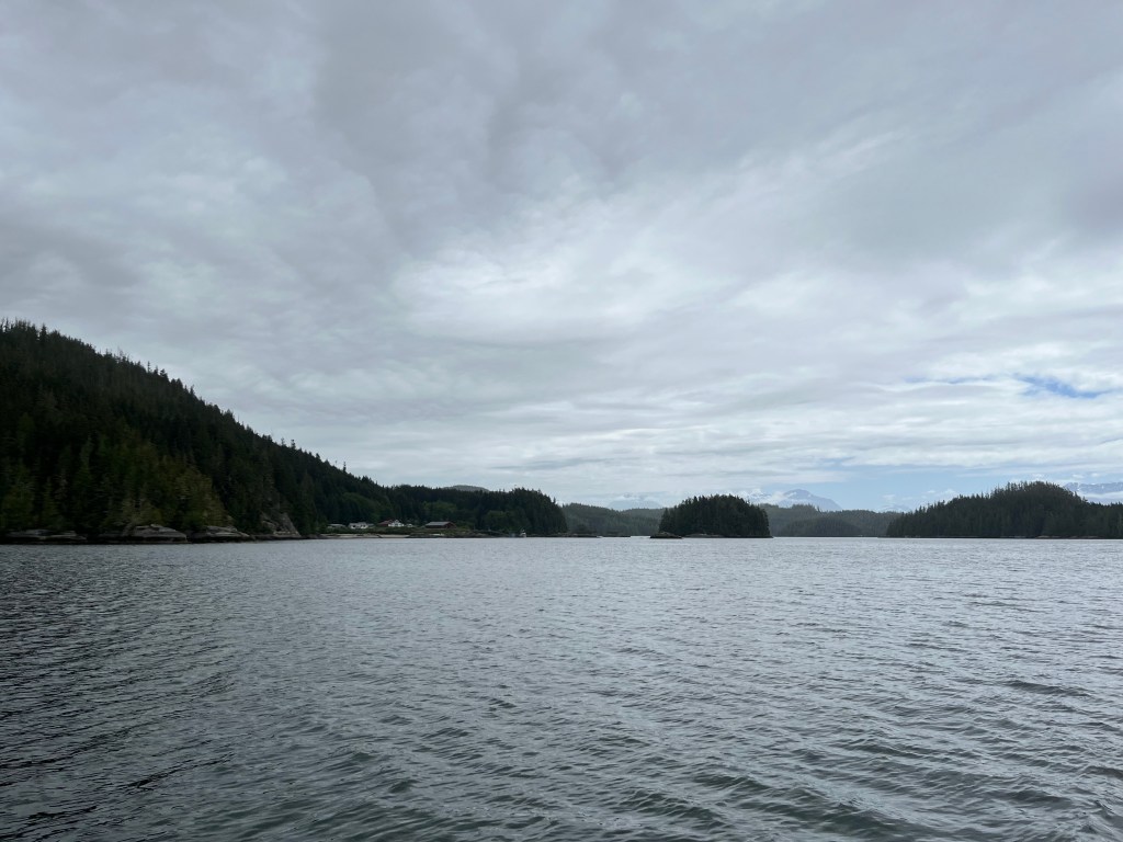Our timing was coincidentally perfect in getting to the Chatham Channel at slack tide. Ironically we would would have been early if we hadn’t had our mishap that morning. We motored up the channel and out into Knight Inlet.