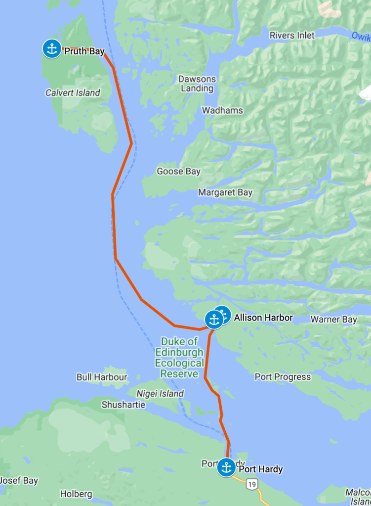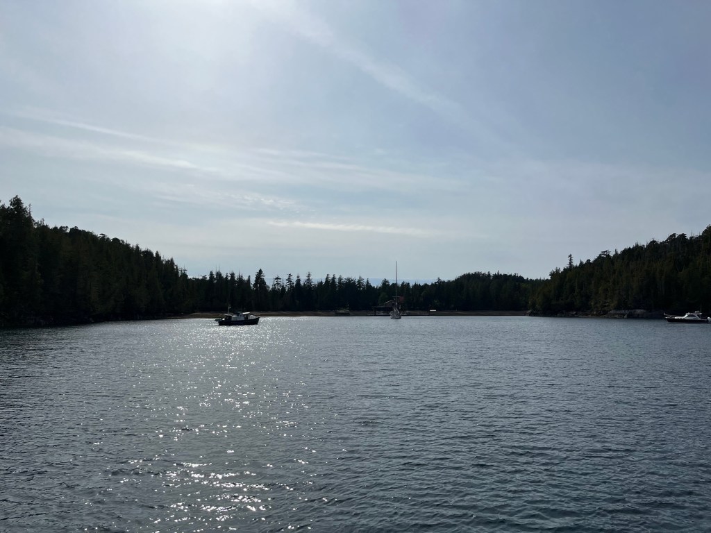 I had been dreaming of coming to Pruth Bay ever since I came across it when reading about the inside passage. The unique geography of channels piercing Calvert Island to a protected bay near the Pacific coast was intriguing. I’d read of the string of sandy beaches on the Pacific side, just a short walk from the anchorage, which can be explored by foot. On top of that, the conversion of a former fishing lodge into the Hakai Institute for ecological research sounded like a very interesting place to see.