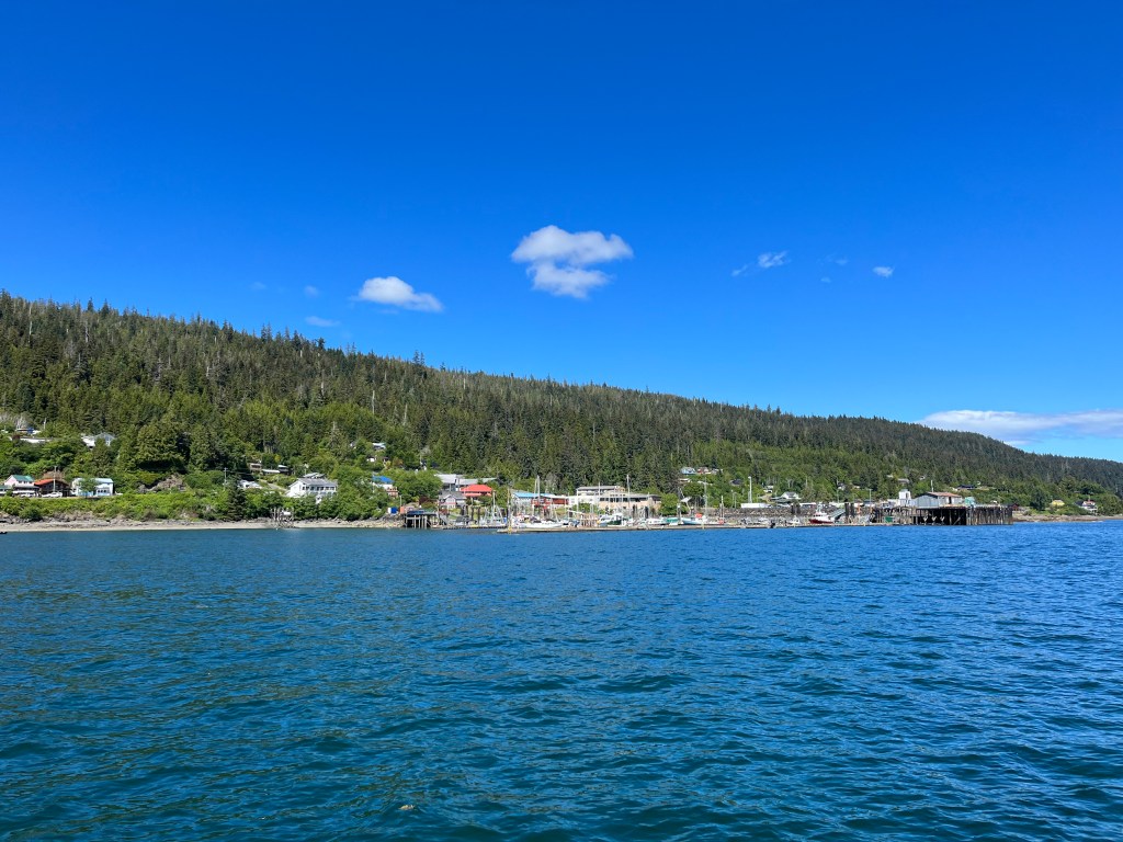 We anchored outside of the city marina in Queen Charlotte City. This was a fair sized anchorage with room for quite a few boats, and we ended up sharing it with 5 others by the time we left. It seemed like a crowd after the anchorages we’d been in for the last few weeks.