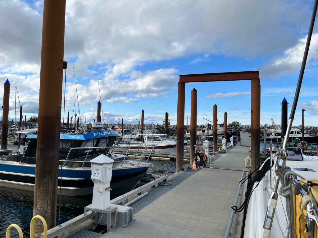 The marina at Sandspit was nice, plenty of space and seemed nearly unused but for local fishing boats. We soon learned why as there was no easy access to stores or restaurants, and no taxi service on that side of the inlet. We fueled up and eased into our slip for the night.