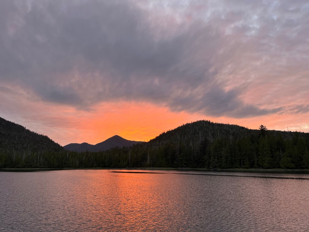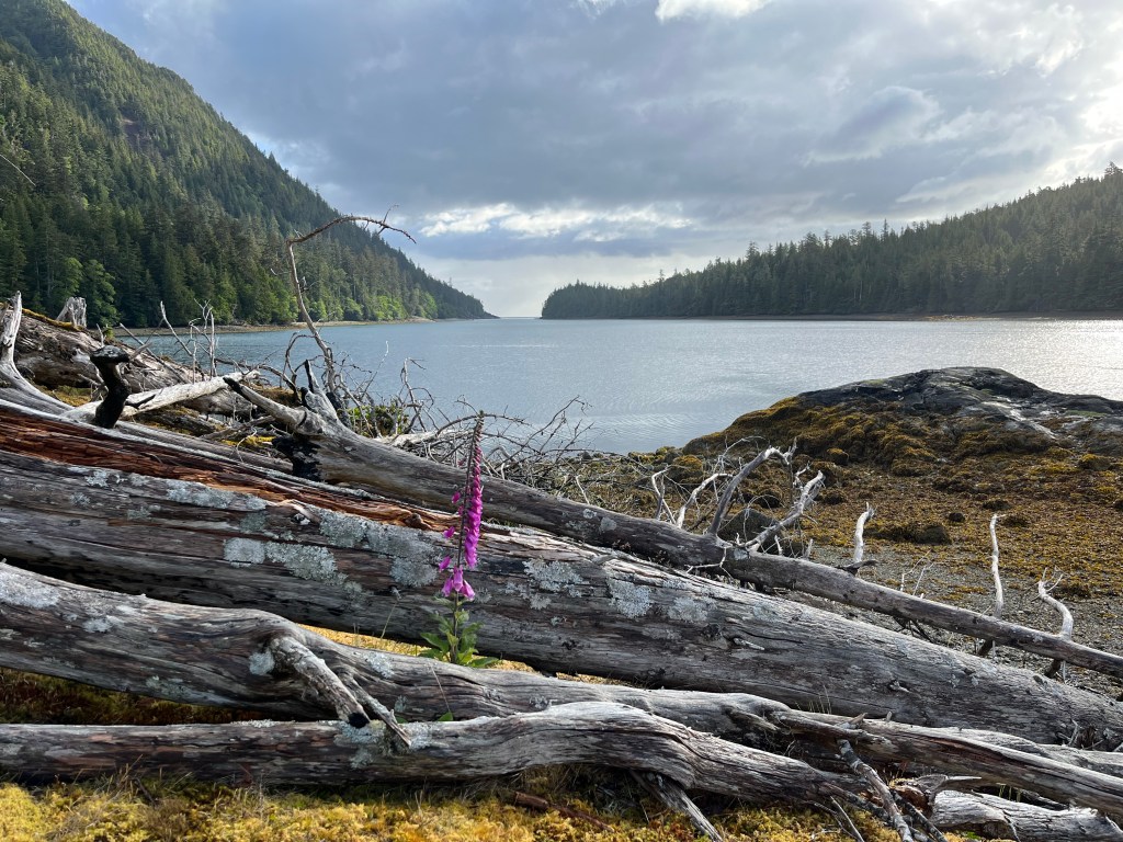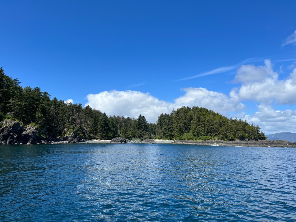 After Skedans, we headed further south to find our anchorage for the night. We picked Rockfish Harbor on the south end of Louise Island as it sounded like we might find good fishing there. It seemed like most vessels headed south might go for Thurston Harbor as it’s a bit closer to the next Watchman site on Tanu Island.