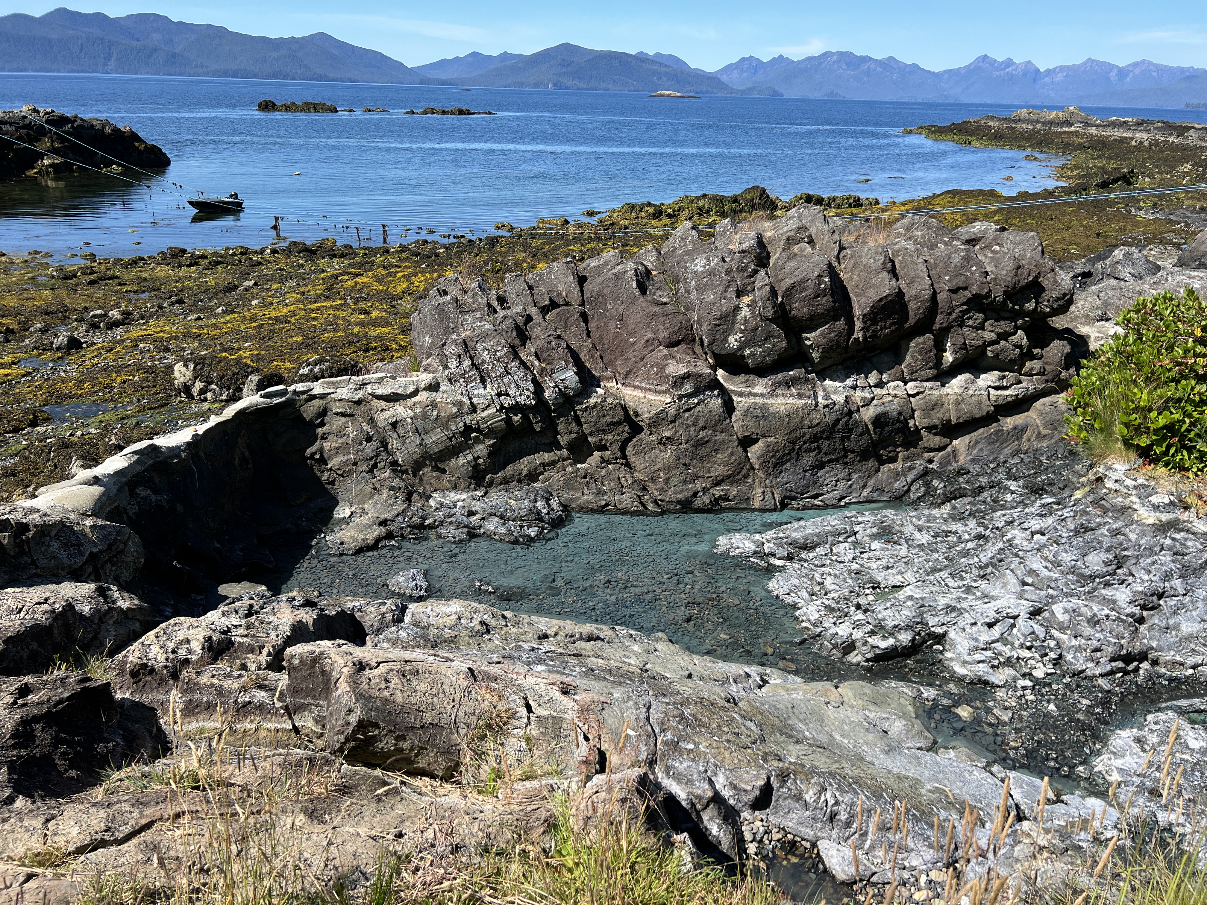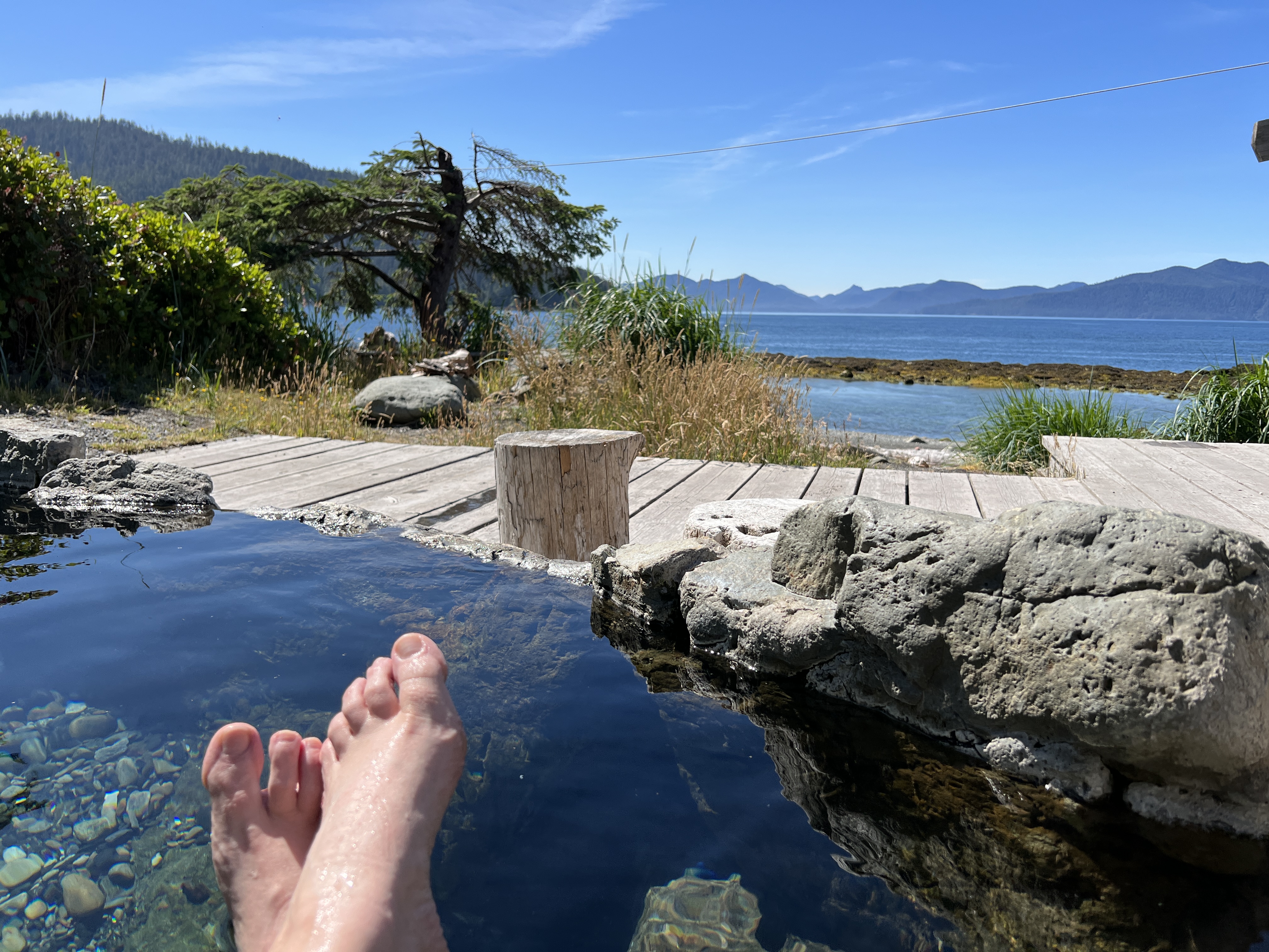 We made it to Gandll K’in Gwaay.yaay (Hotsprings Island) on the 4th of July. We happily stretched our legs on the pleasant hike from the landing beach to the hot springs, then enjoyed a nice soak in a few of the pools.