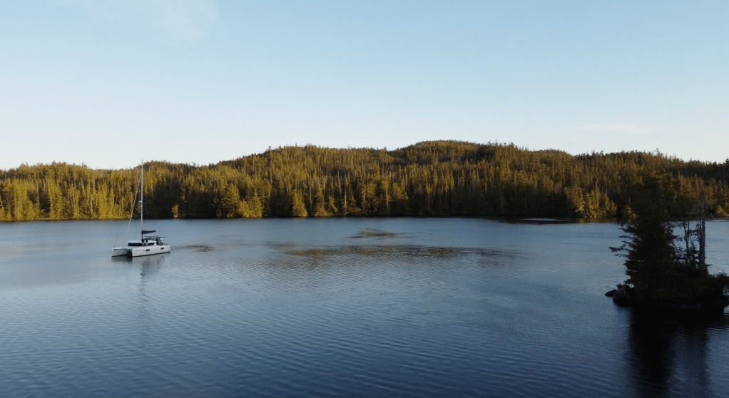Once inside we anchored at the head of the inlet near the channel into the large lagoon. We took the opportunity to fly our drone and get a few pictures of the rapids into the lagoon and the lagoon itself.