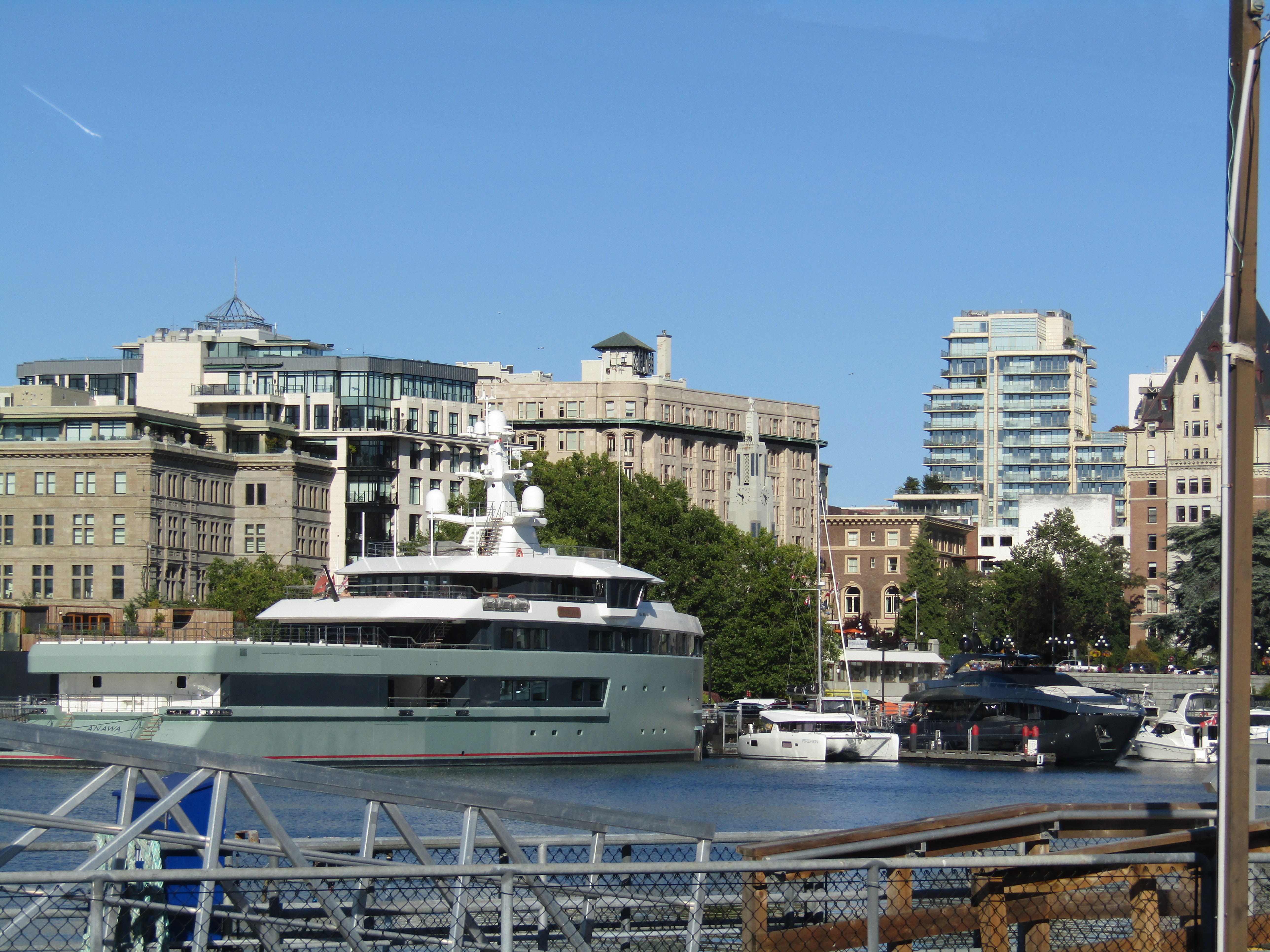 To make matters worse, another, albeit smaller superyacht soon parked on the opposite dock removing our view of the Empress Hotel and Parliment. It was like docking in a canyon! Actually not all that bad, we shared a drink with the very friendly crew of the newly arrived superyacht and were given a tour of their vessel in return. It was quite interesting learning about their jobs and life as crew to the very wealthy. We were stunned to learn that no one besides crew had ever spent the night aboard the vessel – the 5 luxurious state rooms had never been used…