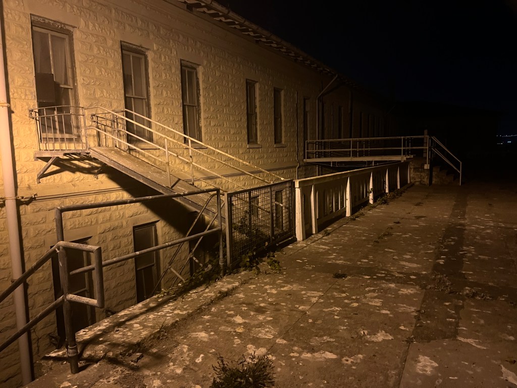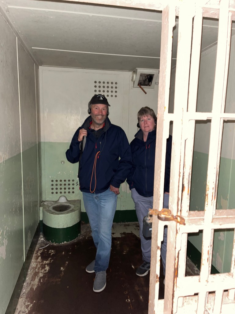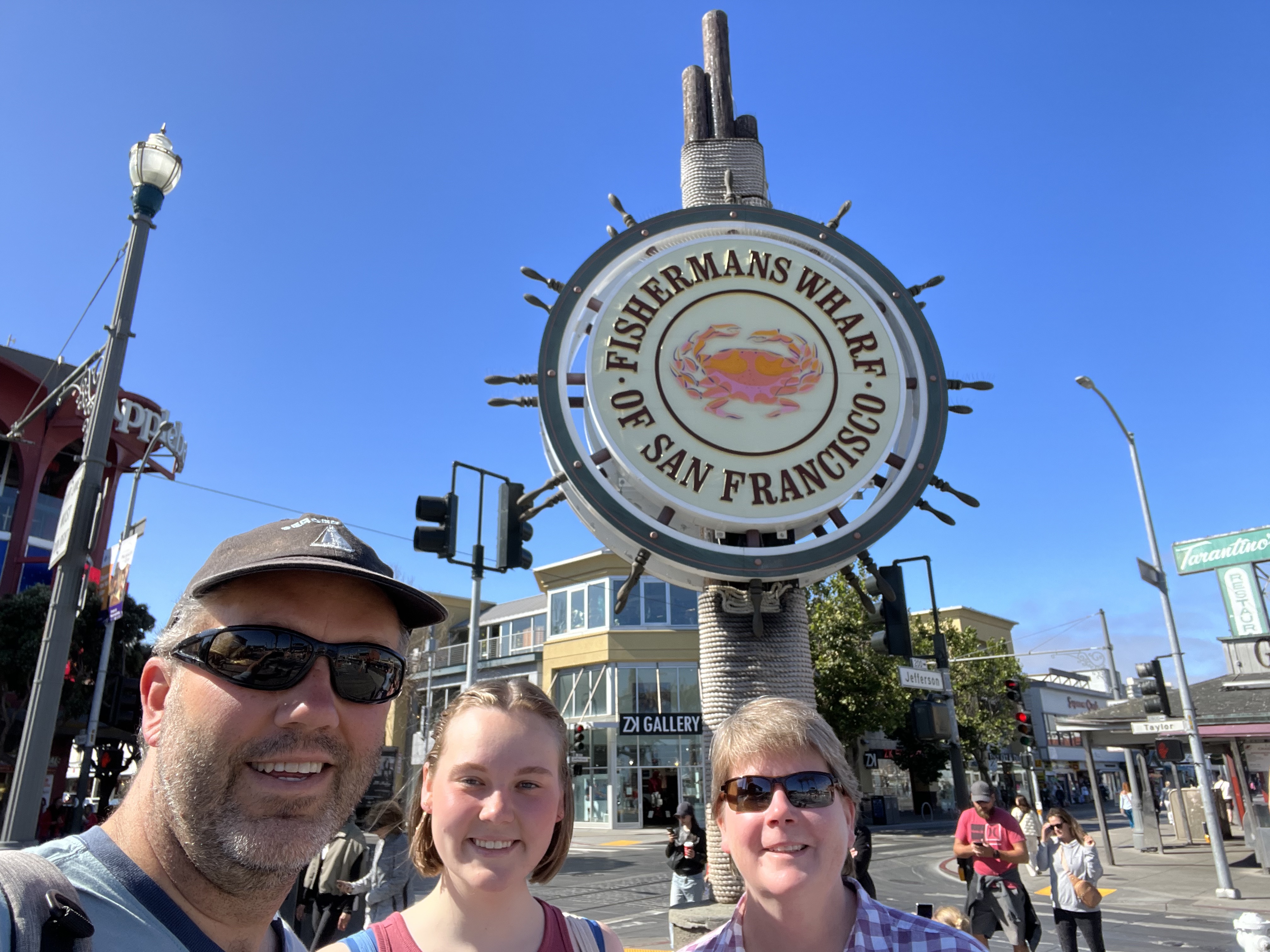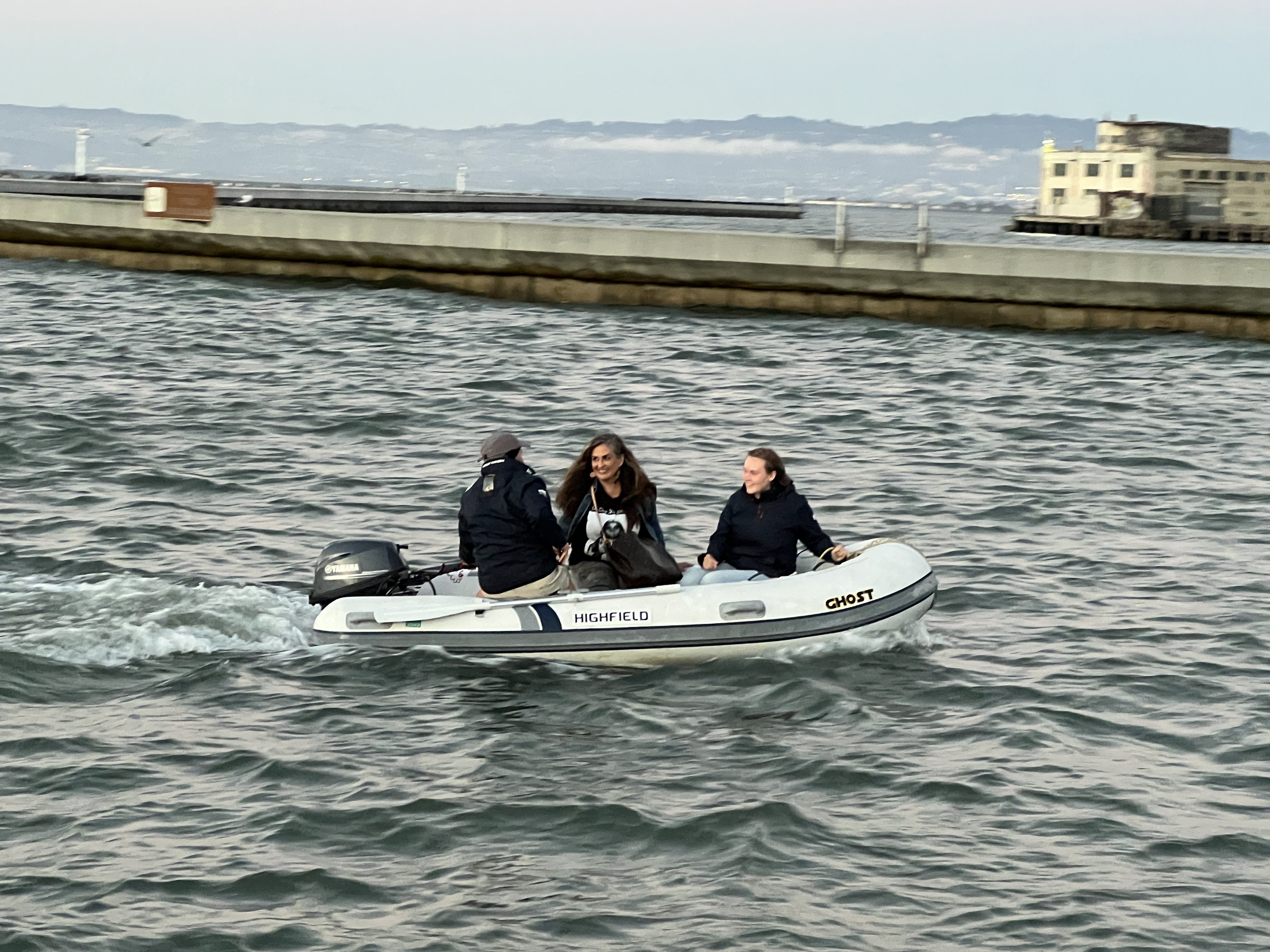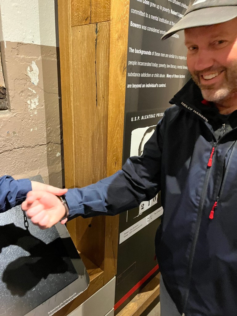The visit to Alcatraz was fun for all of us, once we recovered from getting soaked from the knees down when we beached the dinghy. You might notice in one of the pictures that the skipper’s pants are wet! Seeing the prison at night was very cool, and they only open some of the spaces such as the medical ward for the night tours. Grace thought it particularly funny that the skipper was briefly trapped in the handcuff exhibit, unable to free himself!