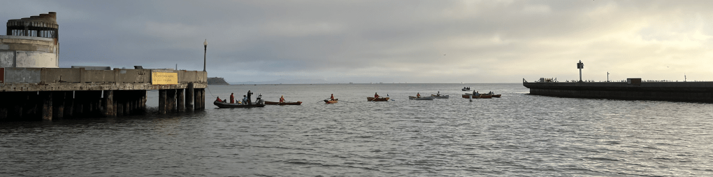 We woke that Saturday morning in the Cove to the sounds of people talking just outside our hull. I went on deck and saw there were swimmers and rowing boats all over the place. We were awestruck by the number of swimmers – there must have been a few hundred – who swam into the cove from some unknown starting point and went ashore at the “Dolphin Club”. Quite the spectacle to see so many people plying the relatively cold waters in their bathing suits.
