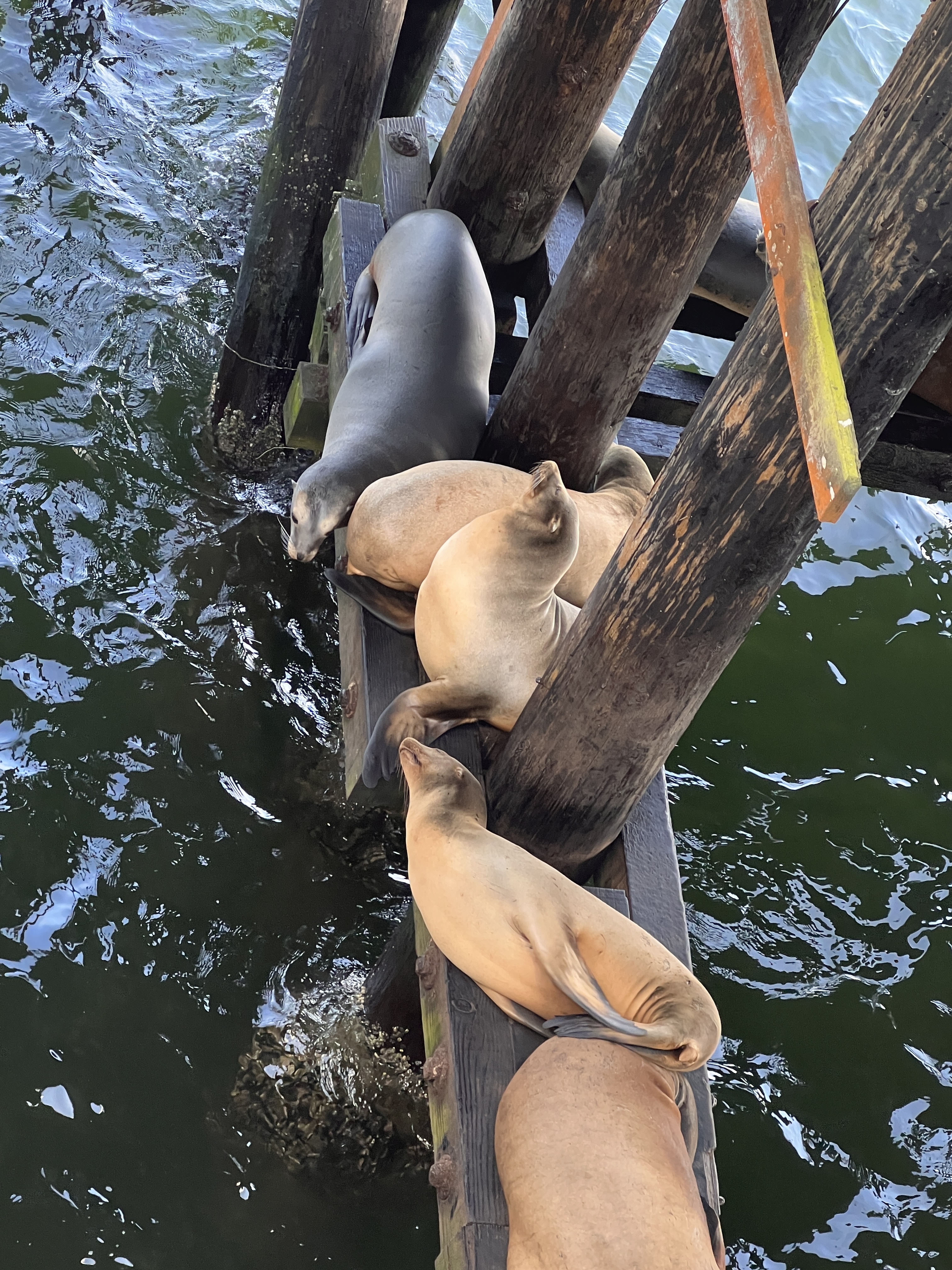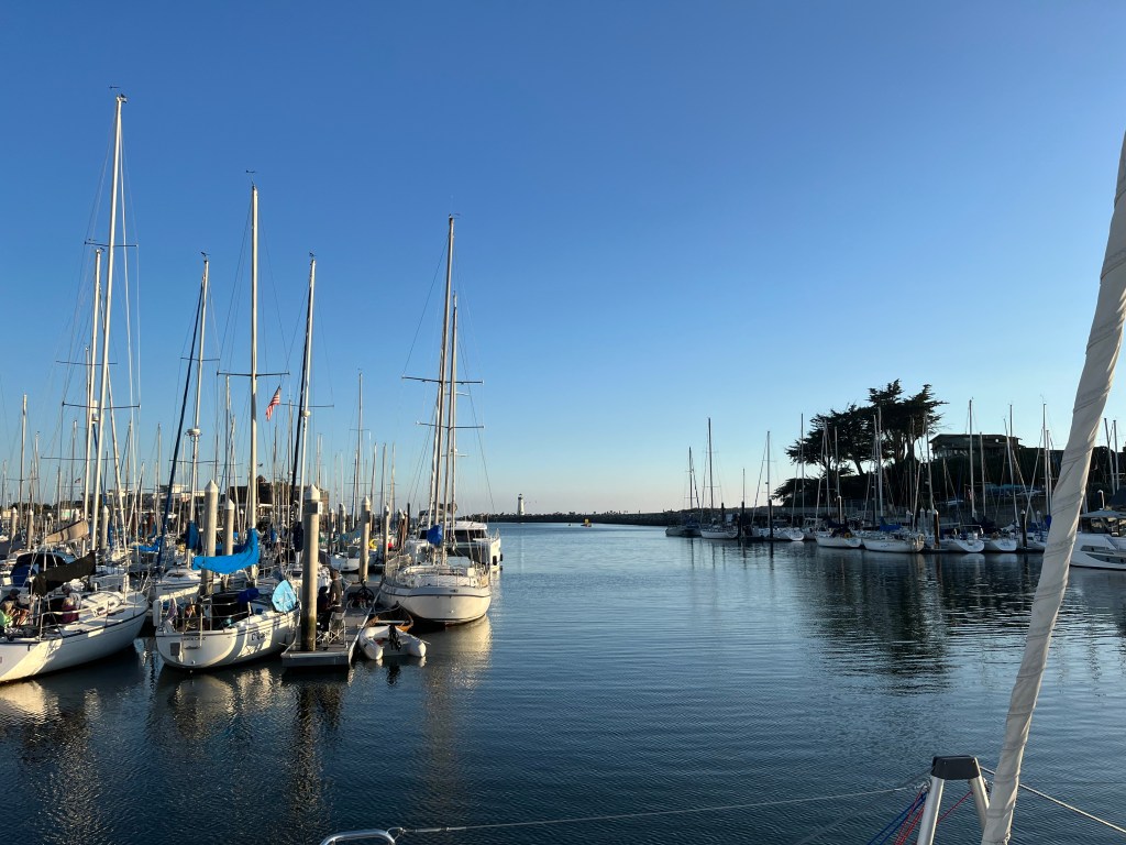 Our slip was deep in the harbor, thankfully relatively far from the sea lion community that permanently resides at the Old Fisherman’s Wharf. These sea lions seem to bark 24 hours a day, and it would be hard to sleep near that din. Don’t even get the Perception crew started on how they smell!
