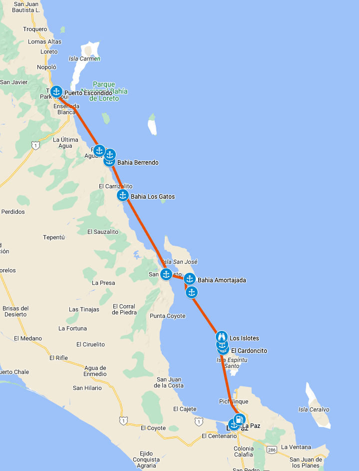 After a hot, buggy weekend in La Paz, the Perception crew was eager to be heading north once more. We pulled our anchor out of the soup, glad to be done “waltzing” for a while. We’d been dreaming of getting up into the islands and bays north of La Paz ever since starting our trip south from Bellingham. All of us had enjoyed our 2020 charter trip to the area and we were excited to visit in our own boat on a more restful schedule.
