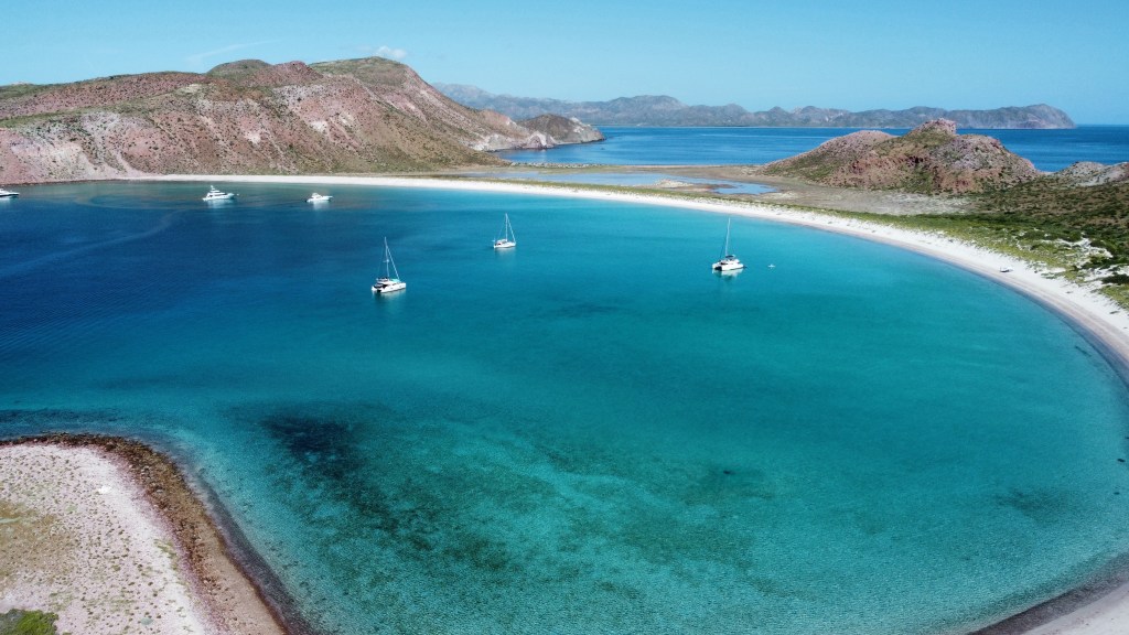 Tuesday morning after a calm night we pulled anchor and headed around the point to Agua Verde. This was originally the stretch-goal destination for our charter back in 2020, but we didn’t get here due to the distance. I was eager to see the place as it has been played up so much by cruisers who visit, and in my mind when planning for our charter those years ago.