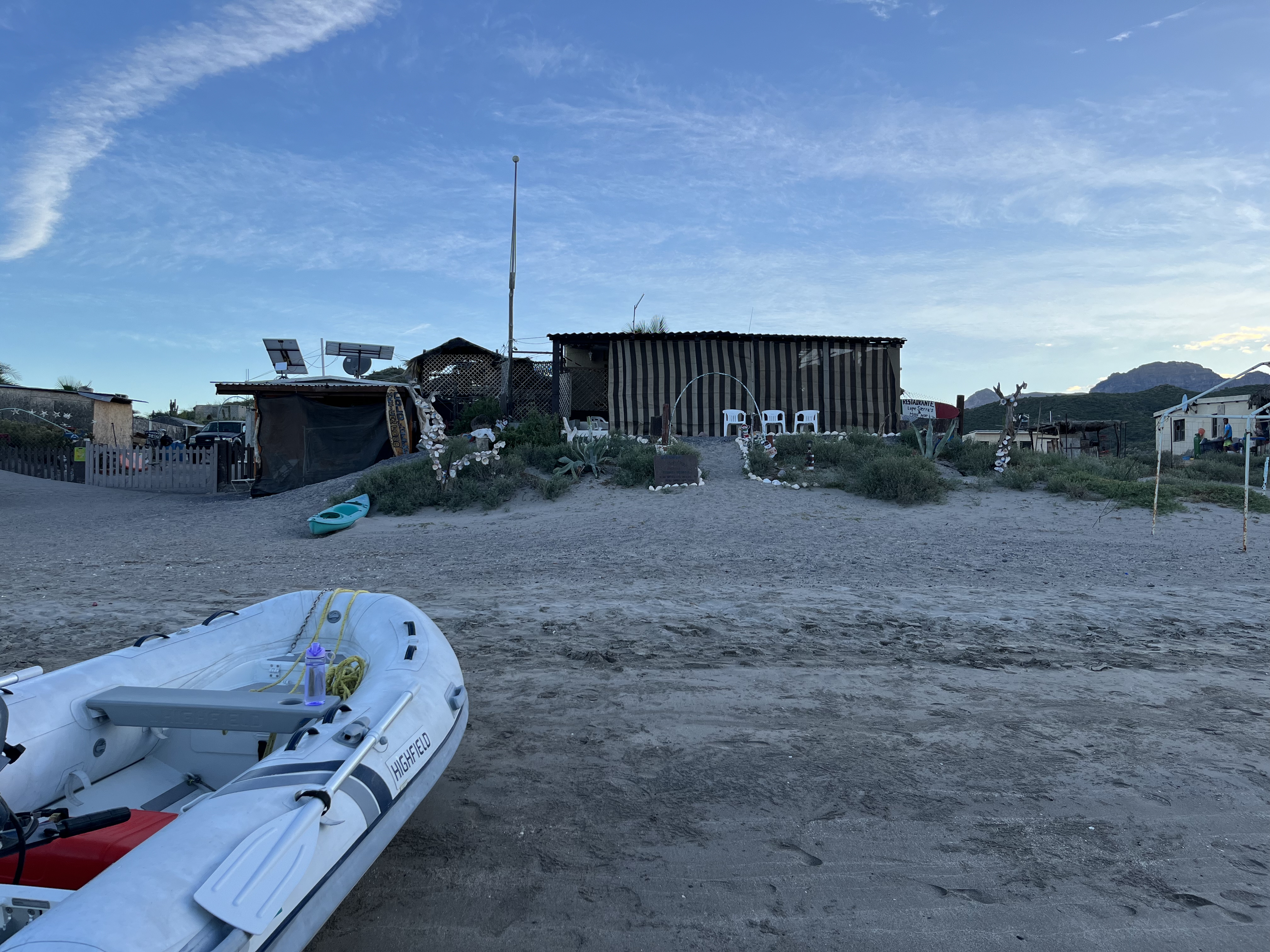For dinner we decided to go ashore and try out the beachside taqueria. We hadn’t really employed our dinghy wheels yet since installing them back in San Diego. We were delightfully surprised at how easy it was to wheel the 300 lbs dinghy up onto the beach. Still a bit of a chore, but nothing like trying to slide the bottom across the sand!