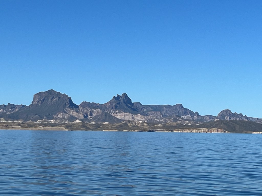 As we steamed north in very light winds, we admired the awe-inspiring Sierra de la Giganta mountain range on the Peninsula to the west. The craggy mountains loom in the background, providing hours of beautiful imagery as we slowly glide by.
