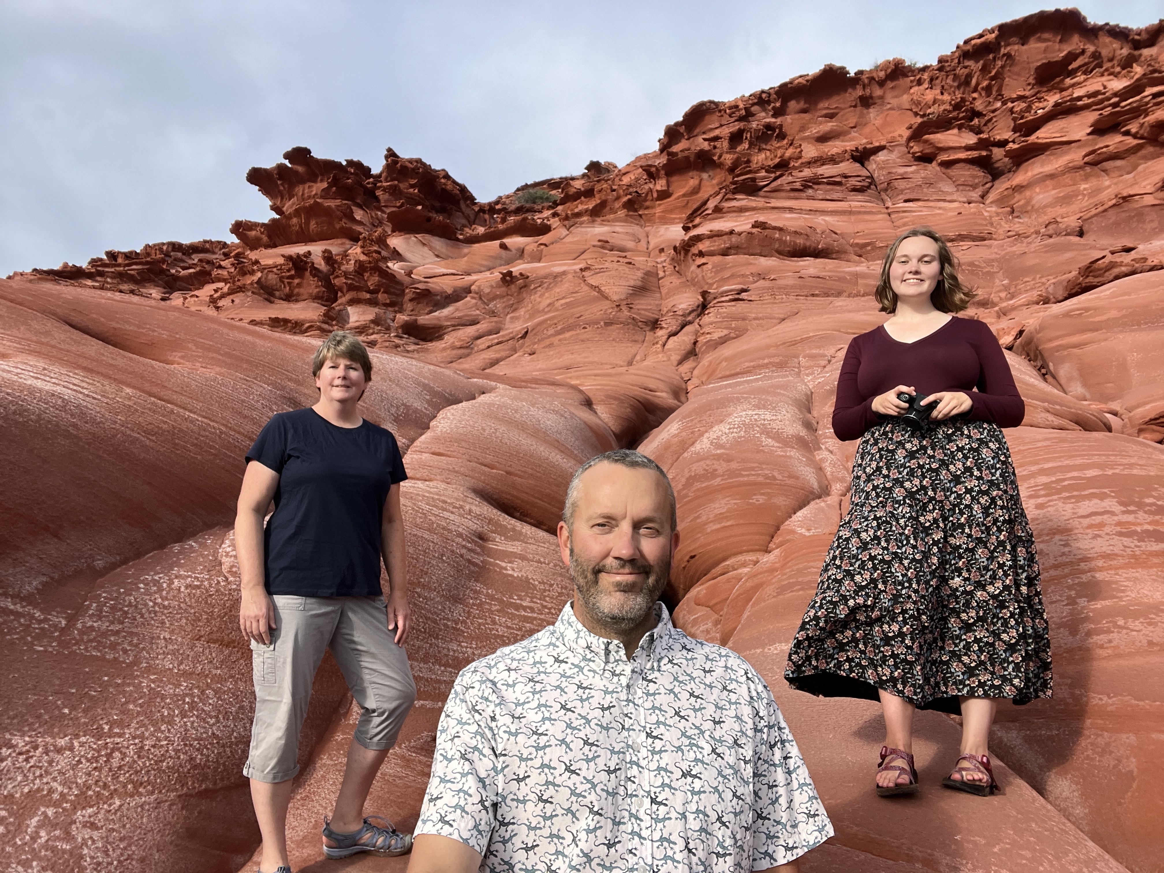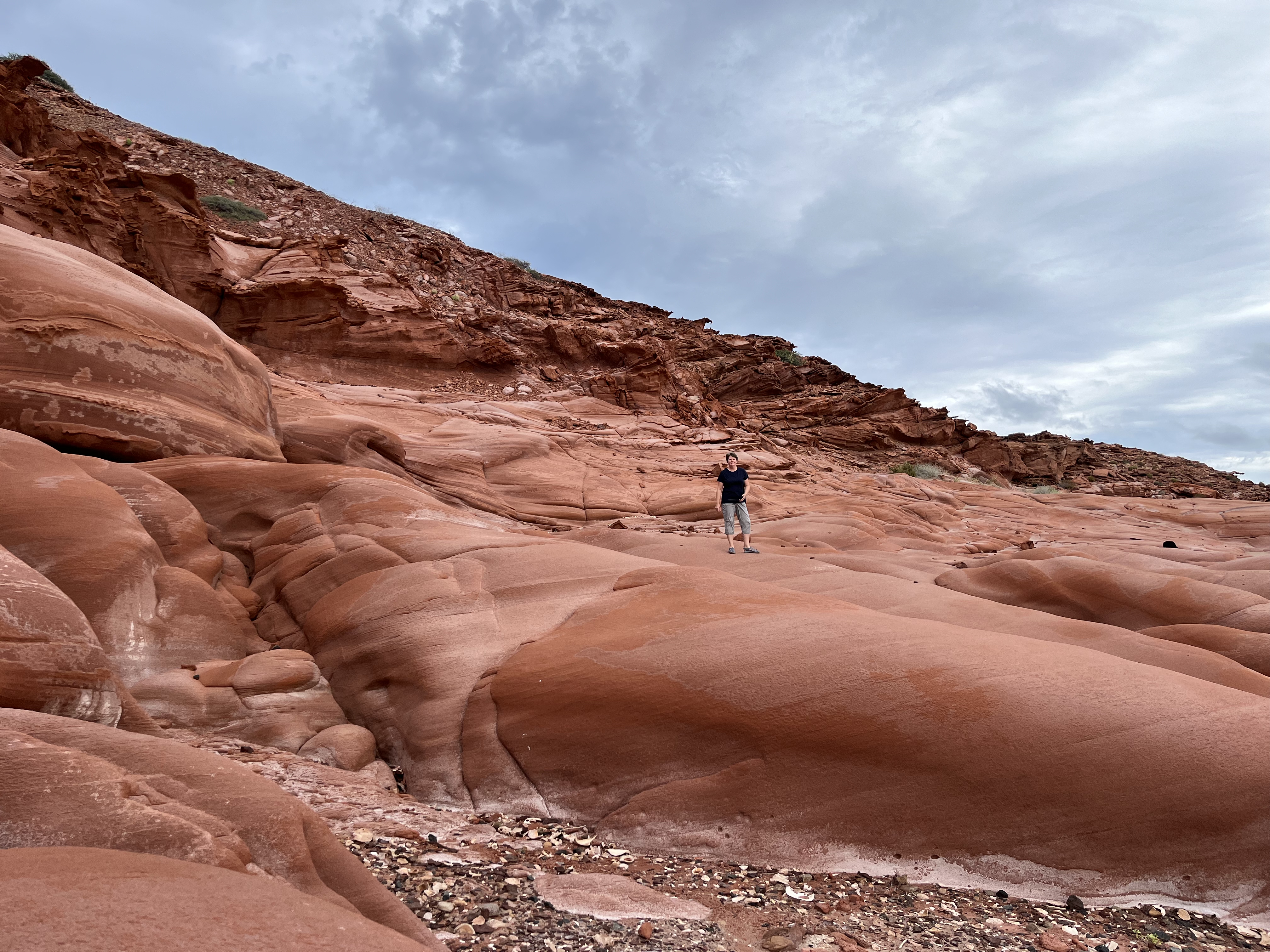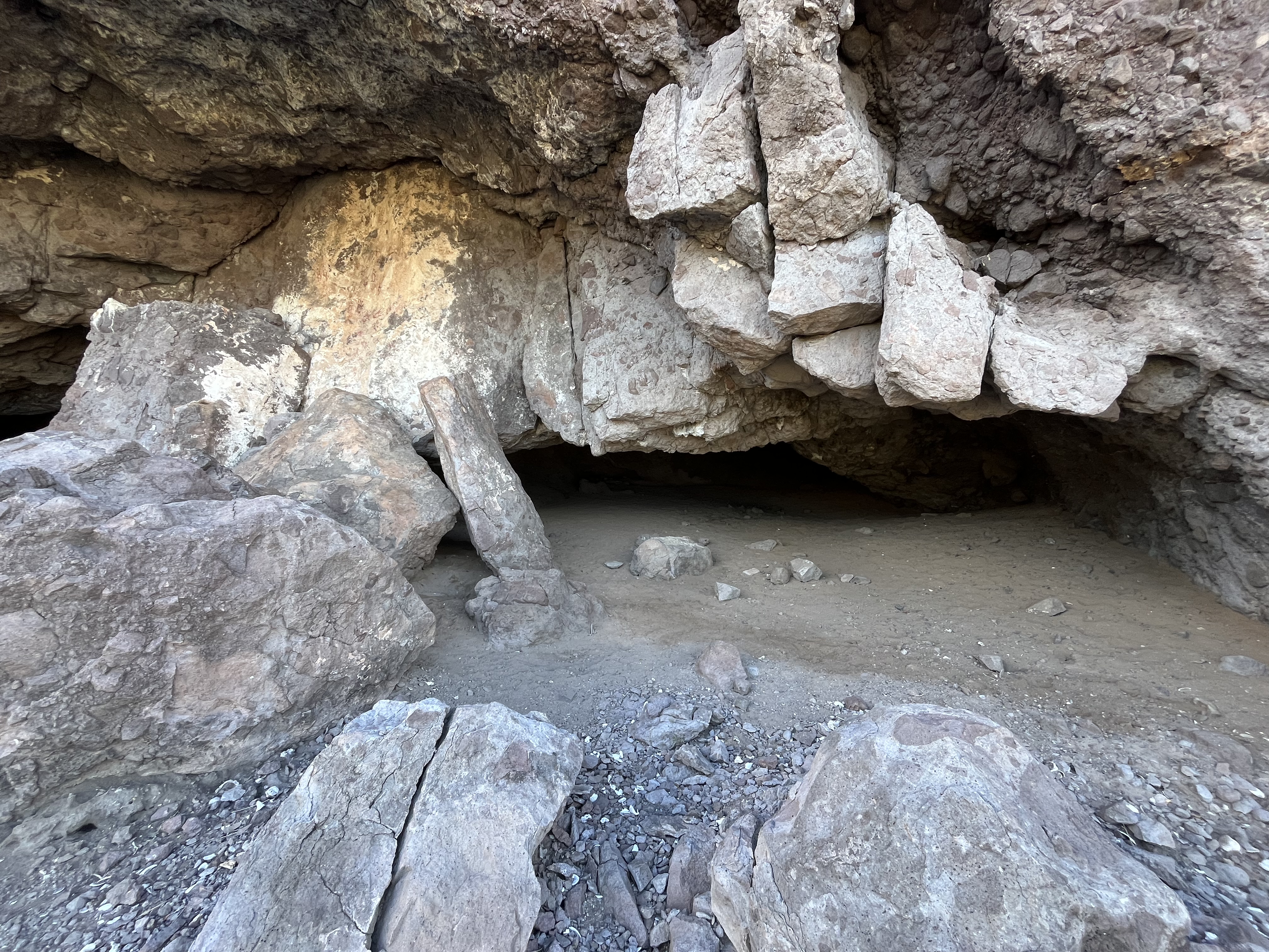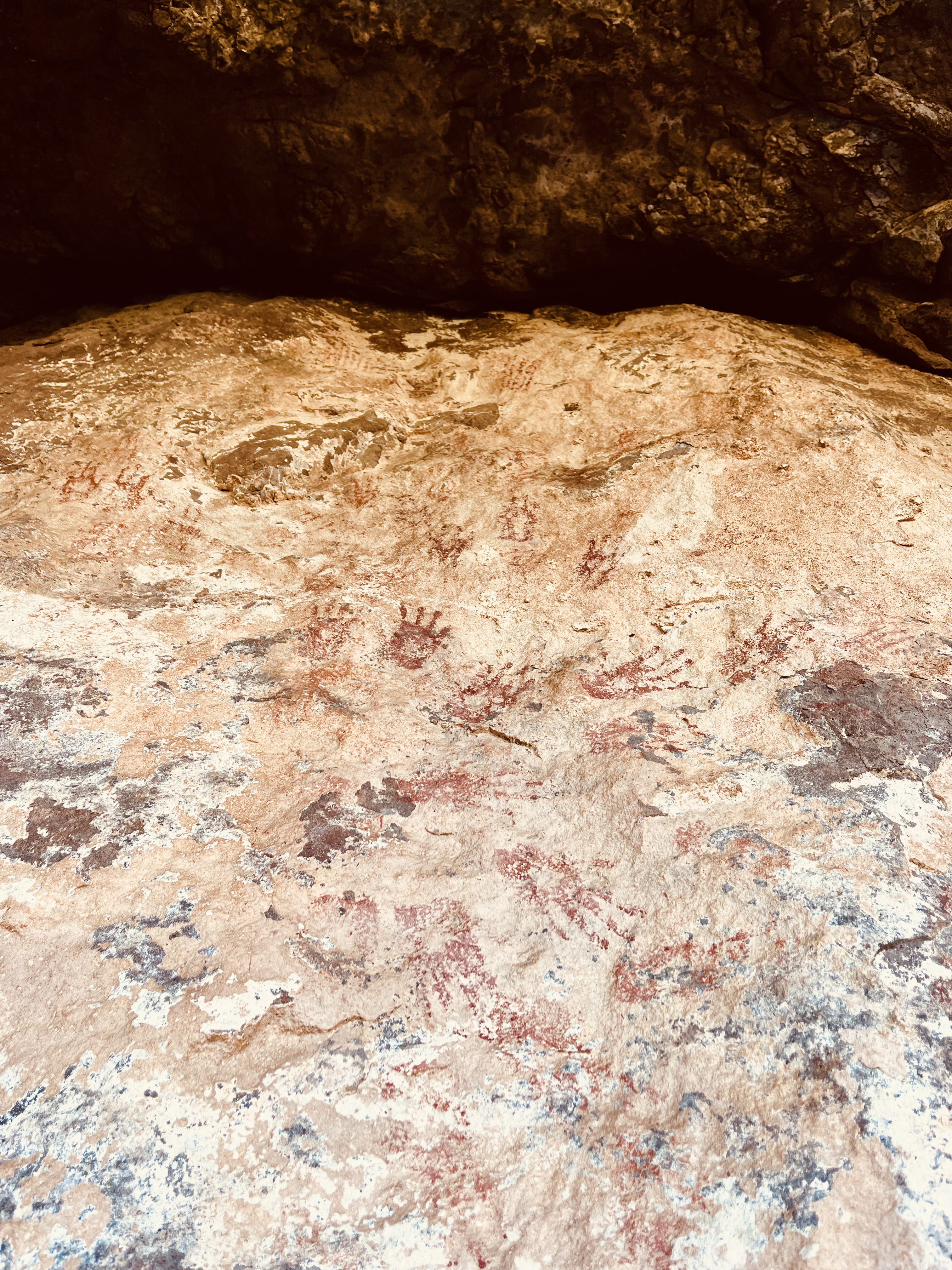 Reaching the mouth of the cave required some scrabbling over areas where a fall could be catastrophic, so we approached with great care. The cave mouth provided a glorious view of the Sea of Cortez in front of us. The mouth divided into two separate entrances into the shallow cave behind, and in the center was a space covered with red handprints. Grace really enjoyed this archeological visit, and scoured the cave to see if she could find any stone tool remnants.