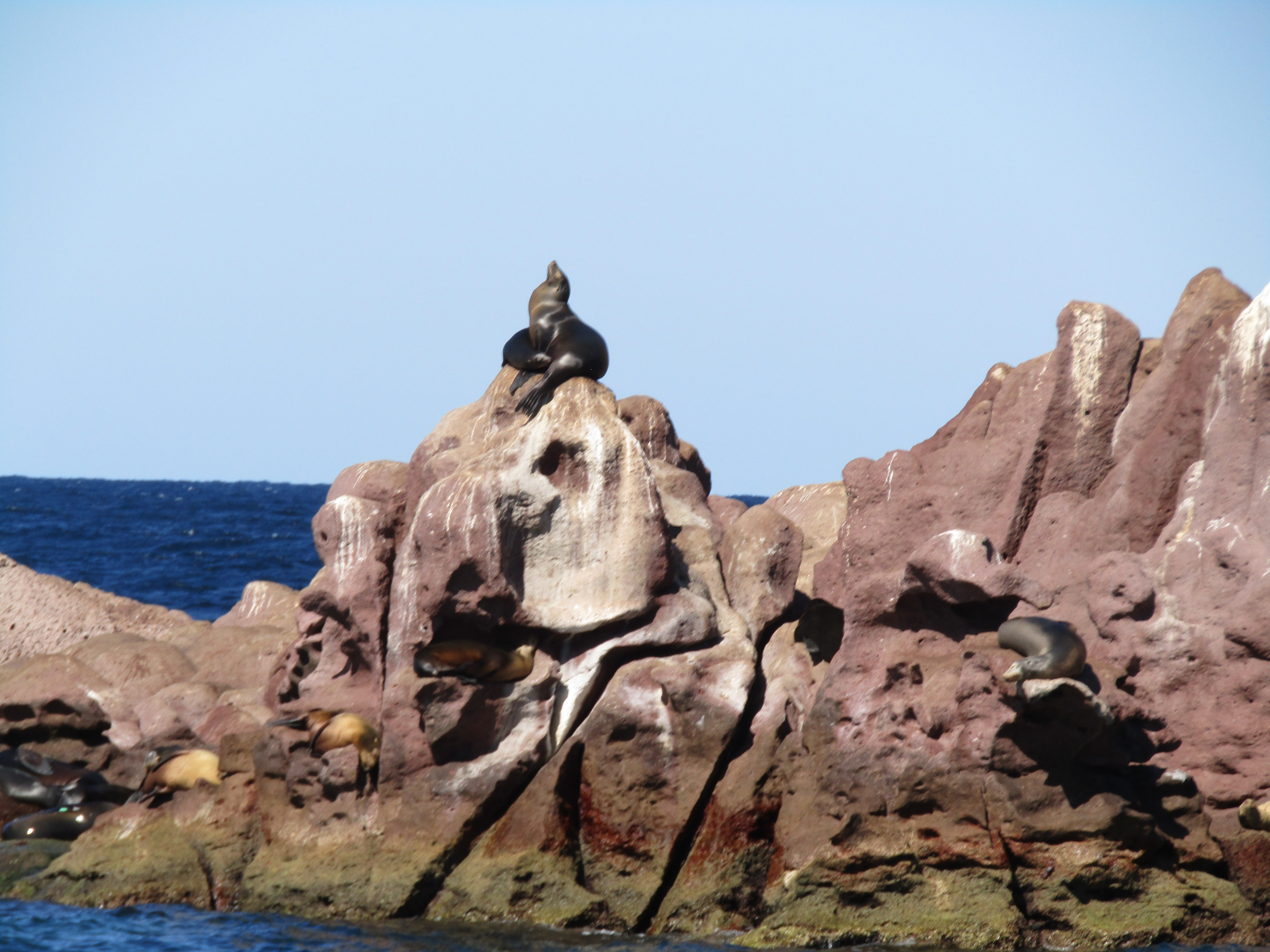 Los Islotes did not disappoint, being surrounded and covered in sea lions. Oh, the stench of it! There’s not much like the smell of a sea lion colony. We floated up to the rock and took in the spectacle. In some cases the sea lions were high up on rocks were you couldn’t see how they’d been about to haul themselves up so high. They sat like kings of their respective mountains, with heads arched back on their spines.