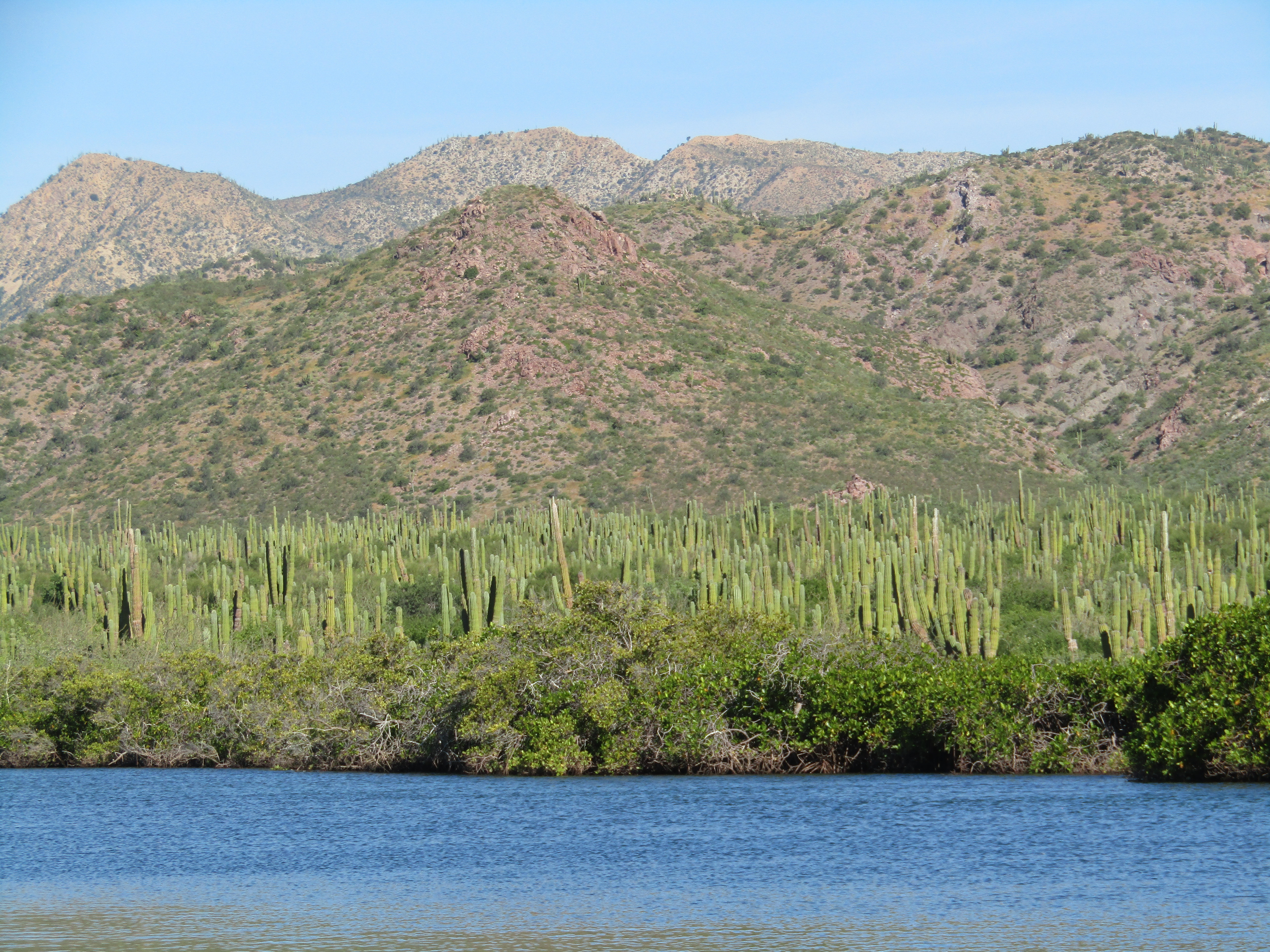 Having comfortably full fuel tanks, we continued on our way up the channel and crossed over to the west side of Espiritu Santo. Our target was a small anchorage on Isla Partida called El Cardoncito, where it was rumored there might be good snorkeling. We wanted to get in and settled in a nice anchorage before a looming norther set in for a good blow.