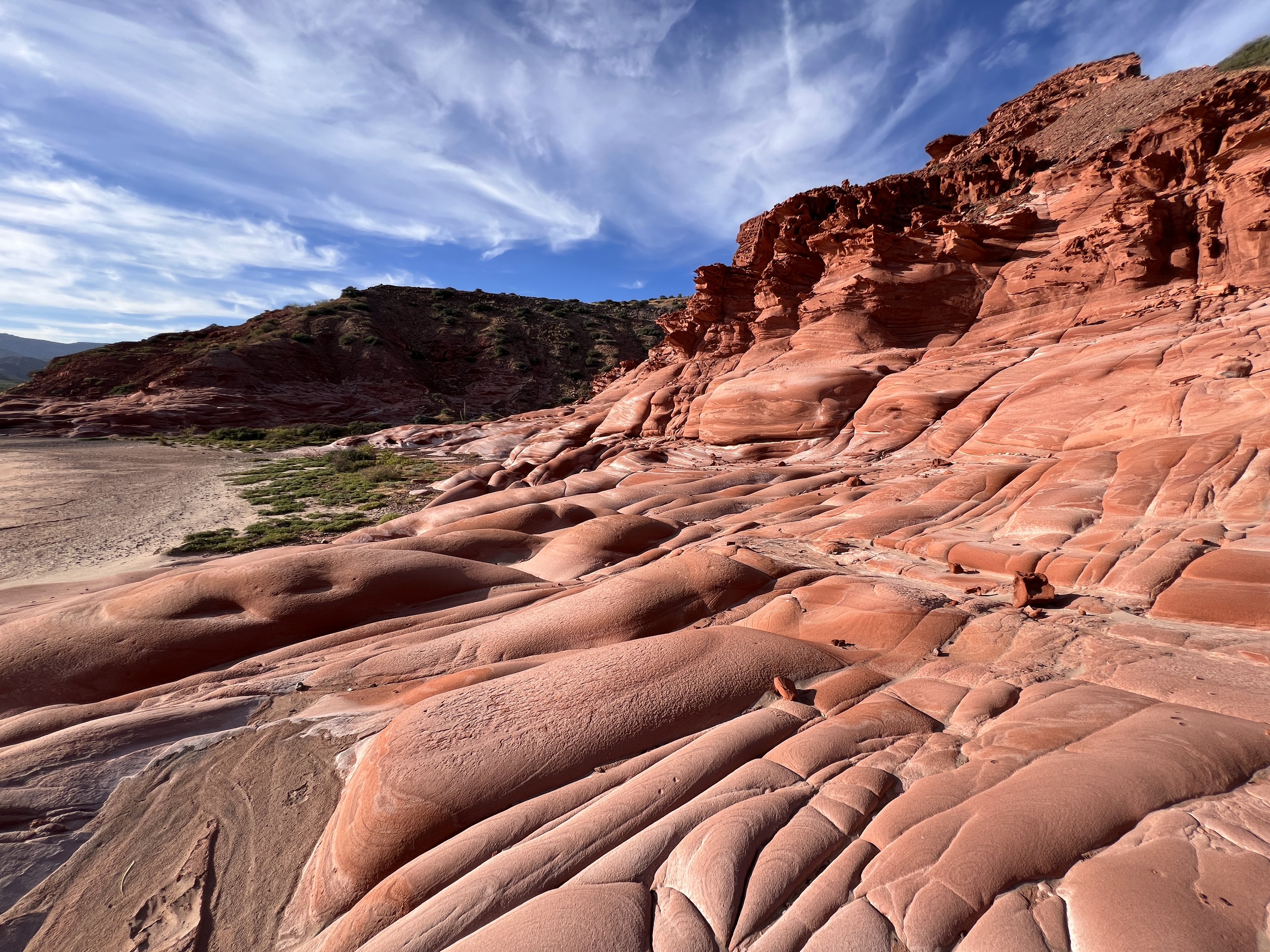 We were all looking forward to our destination for the day, Los Gatos. This small baylet on the side of the Sea of Cortez has the most striking red sandstone bluff on its north end. The wind has carved and smoothed shapes in the rock that you can freely clamber across. We spent two days in the little bay, and had a good afternoon the second day exploring and taking photos ashore.