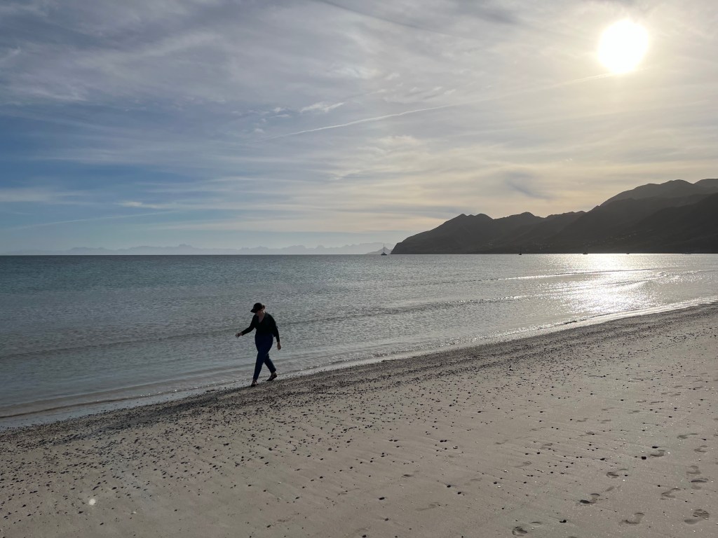 The next day we raised anchor and headed across the Sea of Cortez. As mentioned above, the wind was really not in our favor, being out of the west-southwest and right on our nose. It was less than 10 knots, so the chop coming at us wasn’t too bad, but it meant a long motor across. As night fell, the wind died, and the sea smoothed out for us.