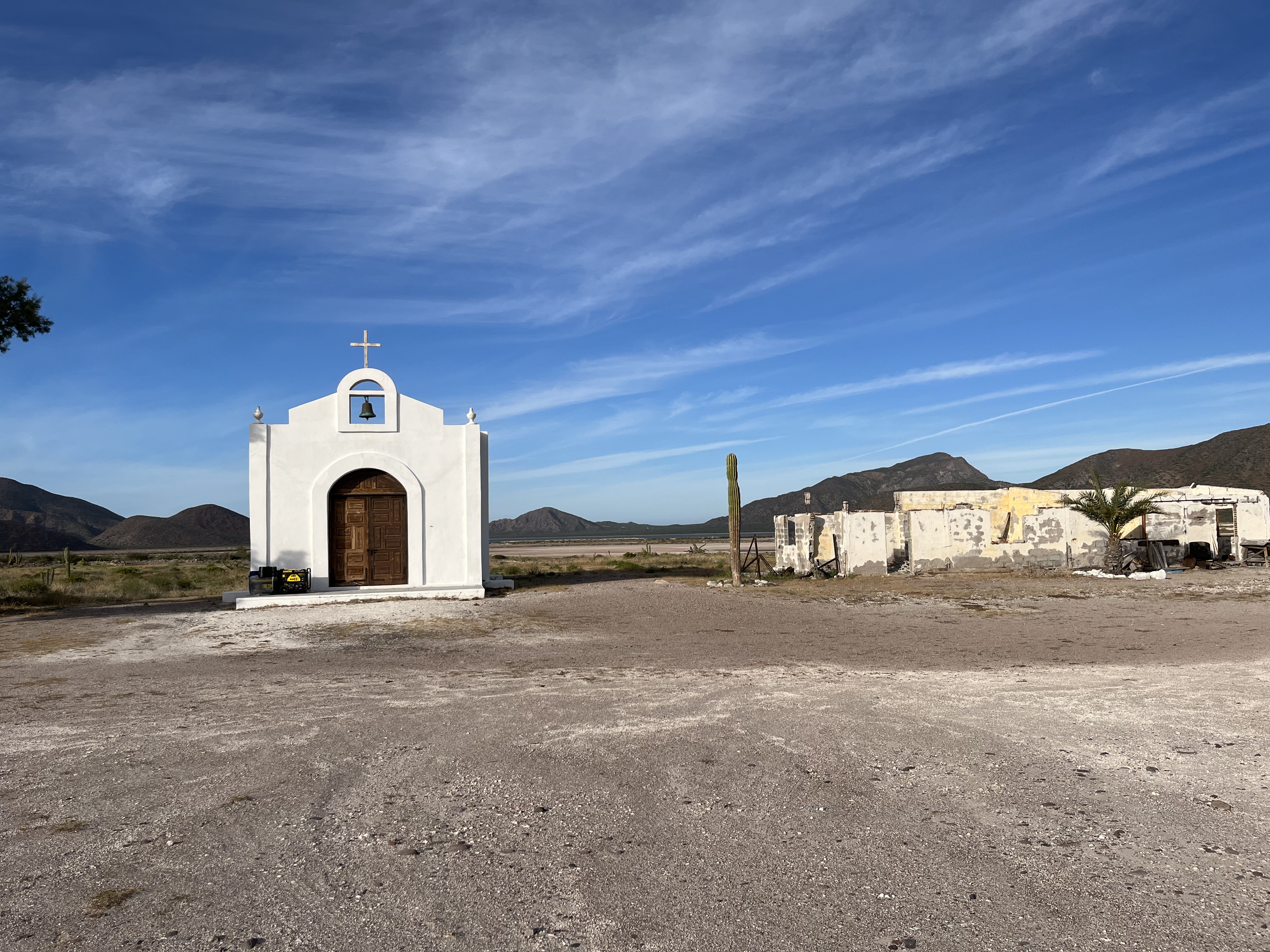 The water was crystal clear in the bay as there is no active settlement ashore and the gentle waves washing ashore didn’t stir up much sand. There had been a salt production facility here in the past, but it had evaporated (ha ha) decades ago when it had become financially unviable. All that remained ashore was a hunters lodge – they hunt big horn sheep here of all things – and a chapel that had been consistently maintained. A caretaker for the hunting lodge lives here permanently, but beyond that the place is deserted.