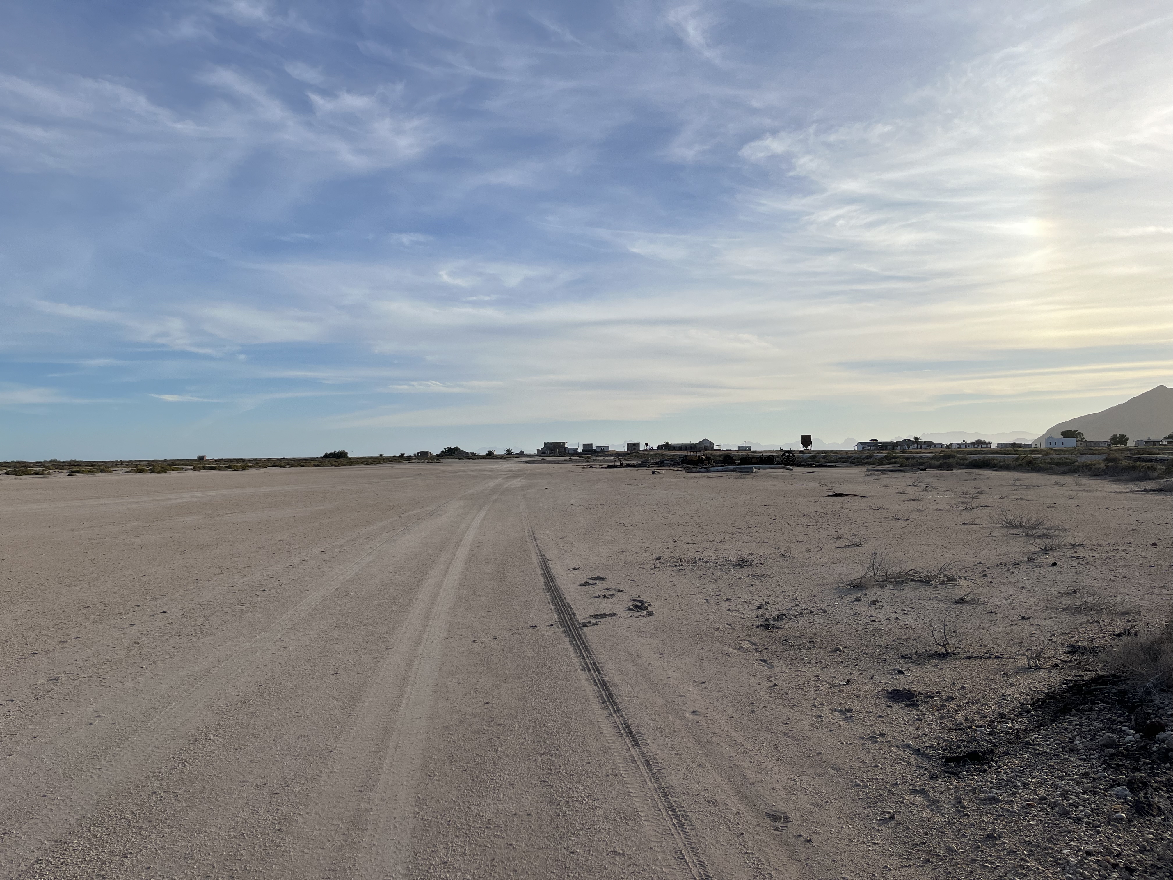 Our main goal here was to see salt pillars that would grow in the inland lagoon where salt had been harvested. These would presumably grow into impressive white forms creating a surreal landscape. We clambered up the beach toward the remnants of the facility and the hunting lodge in front of it.