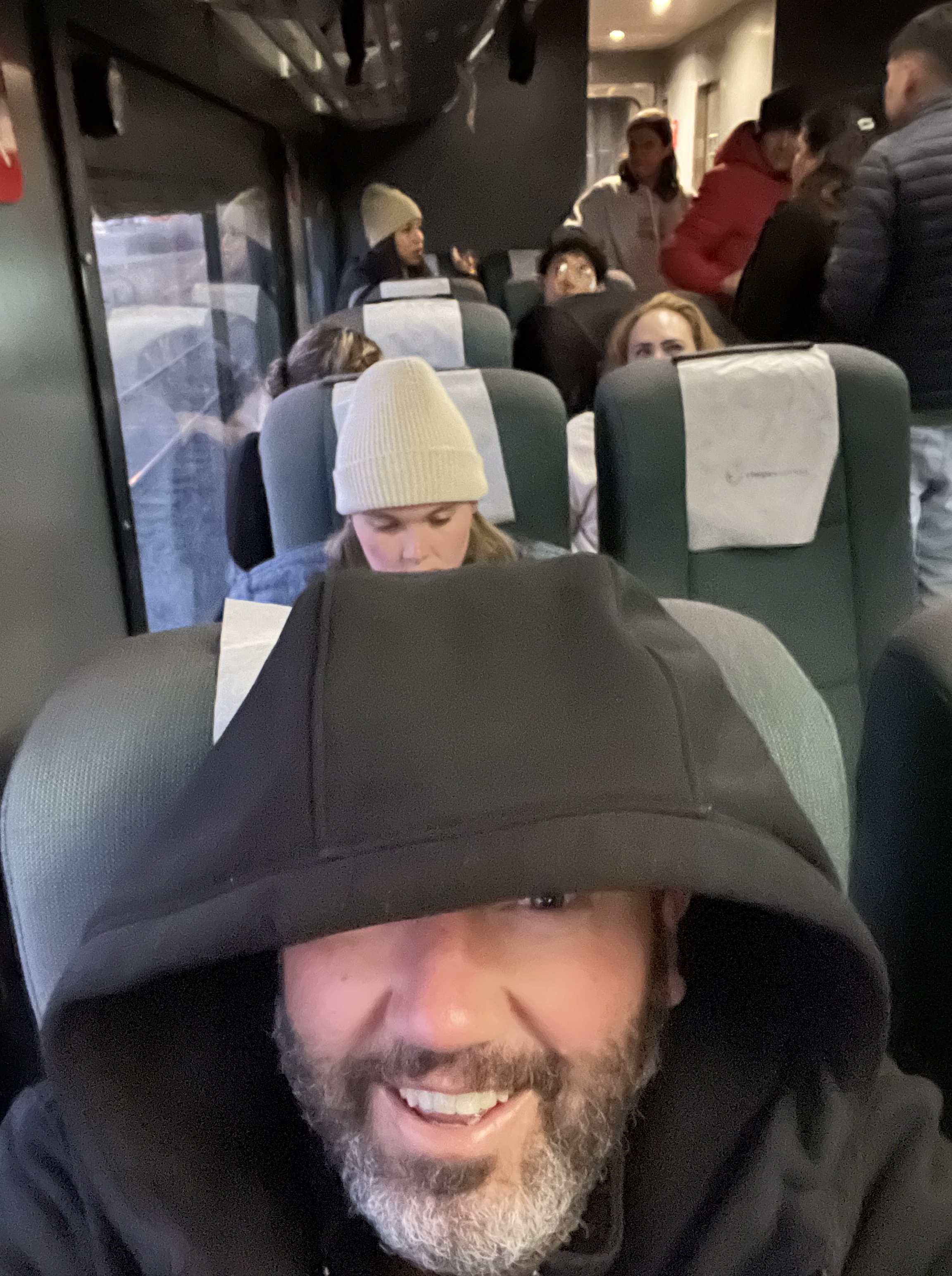 We were set to travel from the sunny, warm coast up to the cold and potentially snowy mountains; and I for one was looking forward to some winter weather. It being just 10 days before Christmas, I was thrilled that the train also played some excellently curated Christmas music in English. The train ride was spectacular. We were awed by the scenery at every turn. The dining car was a special treat, it had panoramic windows and we took a booth on the second floor of the car where we especially enjoyed our dining hour vistas.