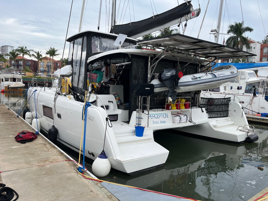 Dawn was lighting up the sky and the land as we pulled into the marina. Besides dodging a few fishing boats on their way out, there wasn’t much traffic to worry us. We found our slip assignment after poking around the dock to find the slip numbers, and pulled Perception safely in to her spot.