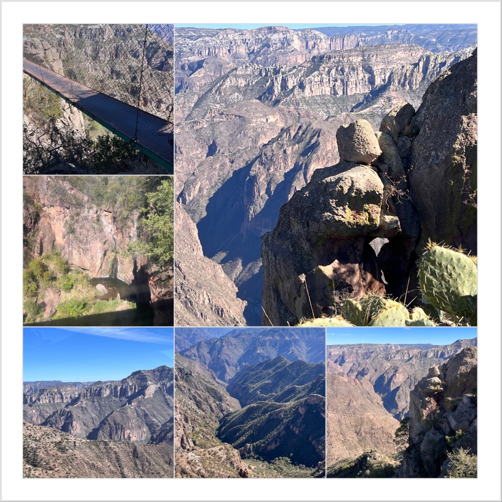 Our guide led us into a cave above the canyon where people were obviously living and we felt like we were intruding. I can’t imagine what they must have thought of us and gave them the remaining candy bars in hopes of making up for our likely unwelcome intrusion. We piled back in the car and our next stop was the spectacular Barrancas del Cobre, or Copper Canyon. The tracks of El Chepe and the Divisidero Station sit right on the divide and once you cross the platform, the Copper Canyon opens up before your eyes. It is an astounding view. The Barrancas del Cobre covers 25,000 square miles – 4 times the size of the Grand Canyon. At Divisadero, you can take the world’s 2nd longest zipline (8,350 feet!) or the 3rd longest gondola to the saddle for 360 degree views of the canyon. We opted for the gondola ride and it did not disappoint. At the end of the day, we returned to Creel and the next morning reboarded El Chepe to return to the boat.