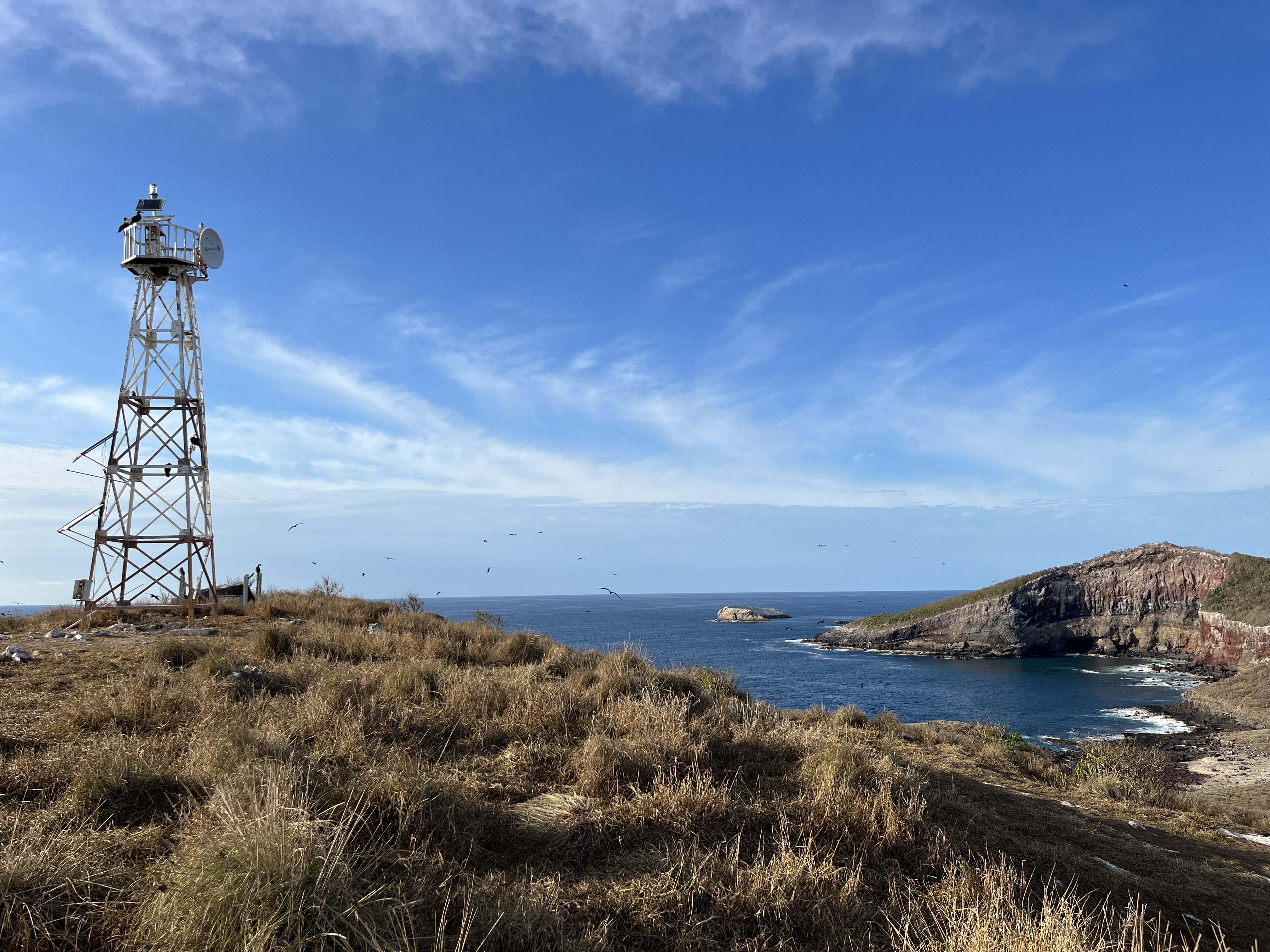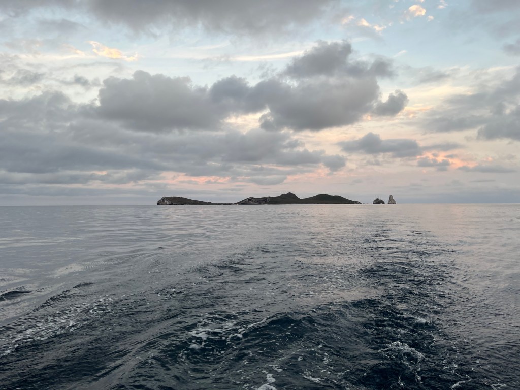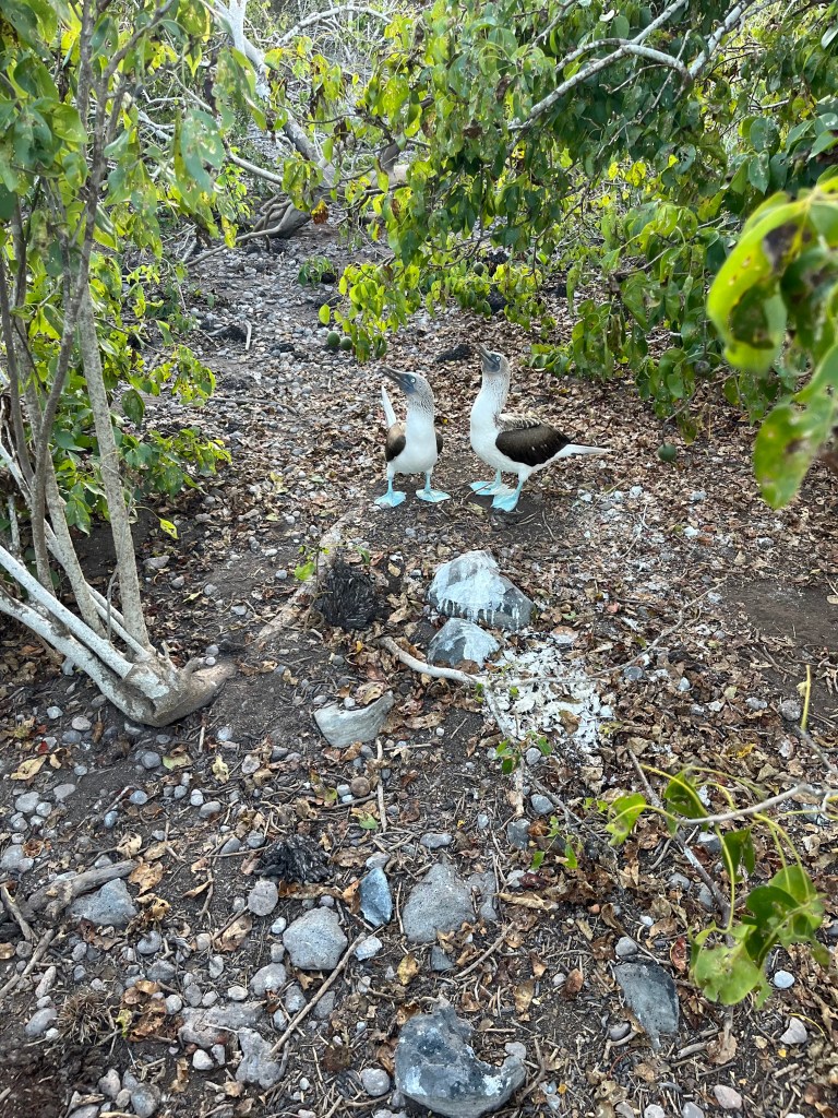 We first made our way up to the southern summit of the island, where the navigation light is located. We had to pass through the abandoned research center on the island to get to the base of the trail. At the top of the hill there were many blue-footed boobies nesting. We enjoyed the stunning view of the island and the comical behavior of the birds.