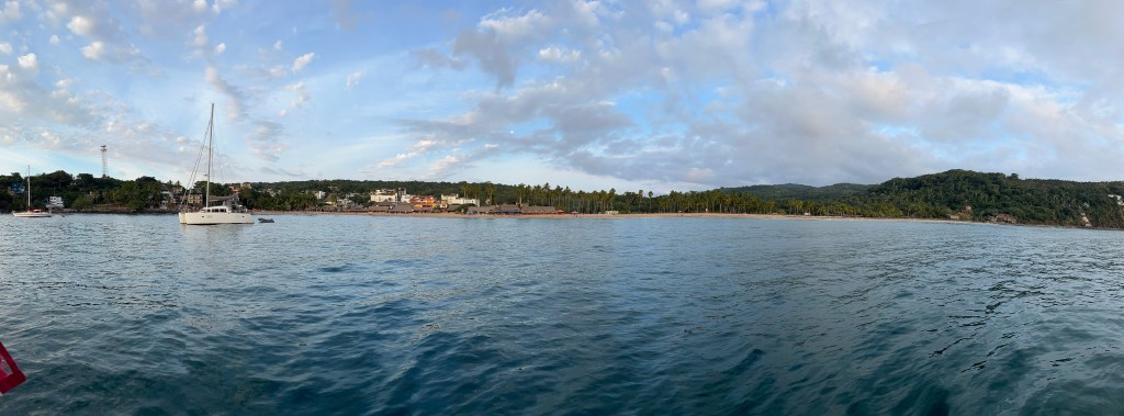 As the afternoon grew long, we found ourselves pulling into the open bay at Chacala. There were already a few boats in the bay, tucked up into the most protected space on the north end of the bay. The swell wasn’t horrible, so we anchored in front of the beach next to another cat and enjoyed the view.