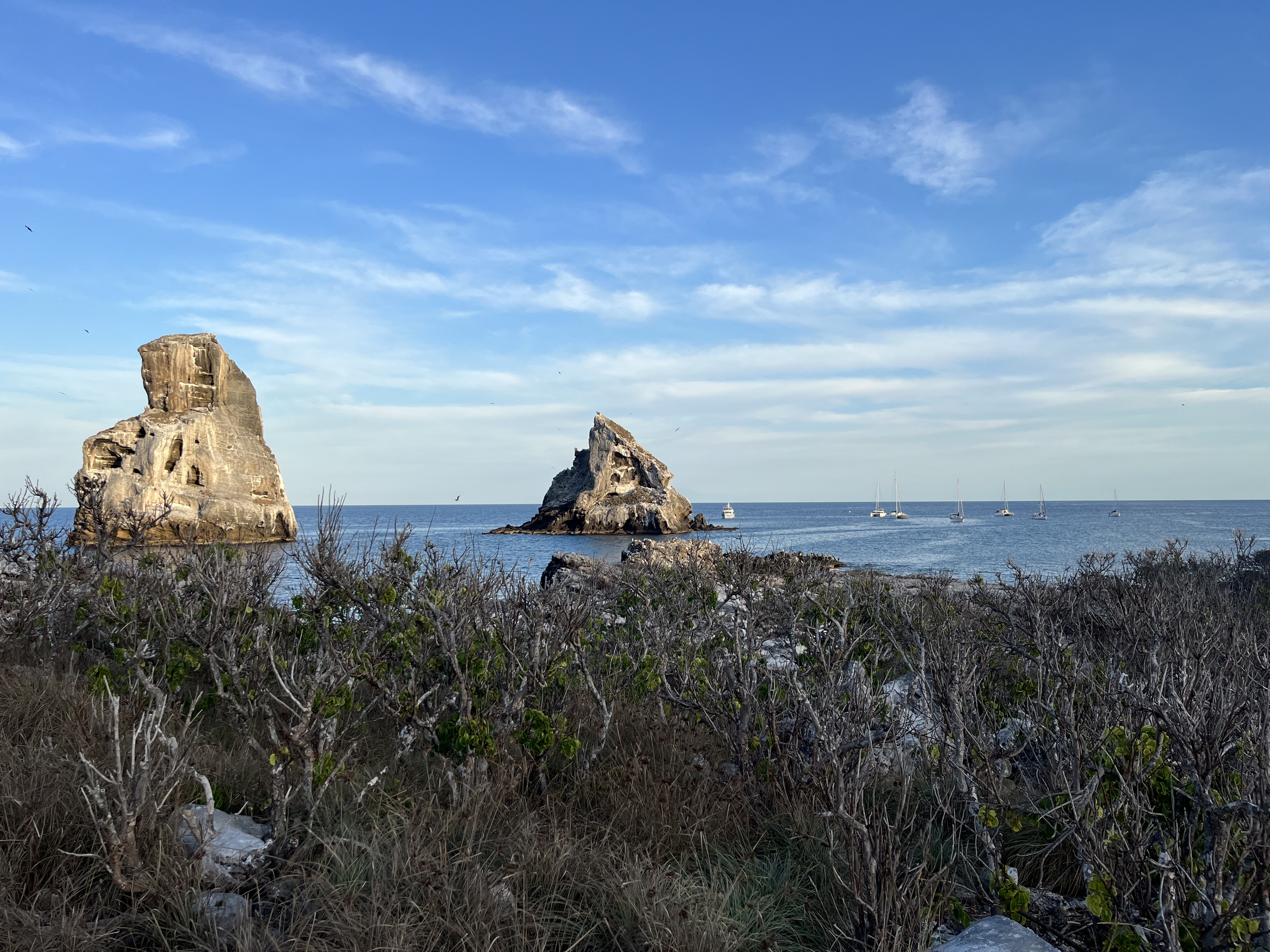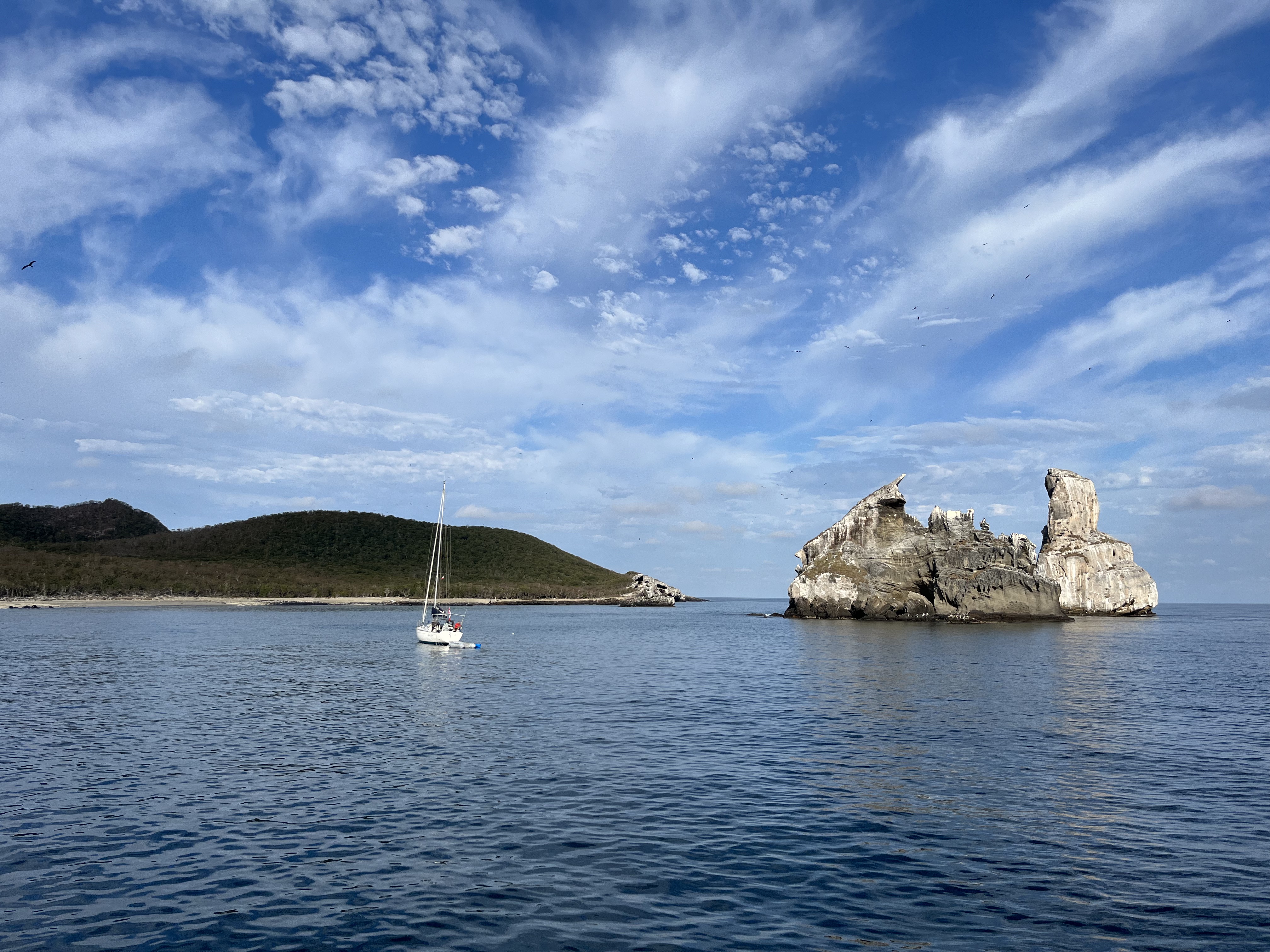 The anchorage was just incredible. The massive rocks off the east coast of the island were stunning and the wildlife was off the scale for us. As we approached the island in the morning light we began to see humpbacks in the distance, and even a few breaches which we had previously seen only a handful of times on our voyage so far. The air over the island and offshore rocks was thick with frigatebirds and boobies. We understand now why the island is referred to as the “Galapagos of Mexico”.