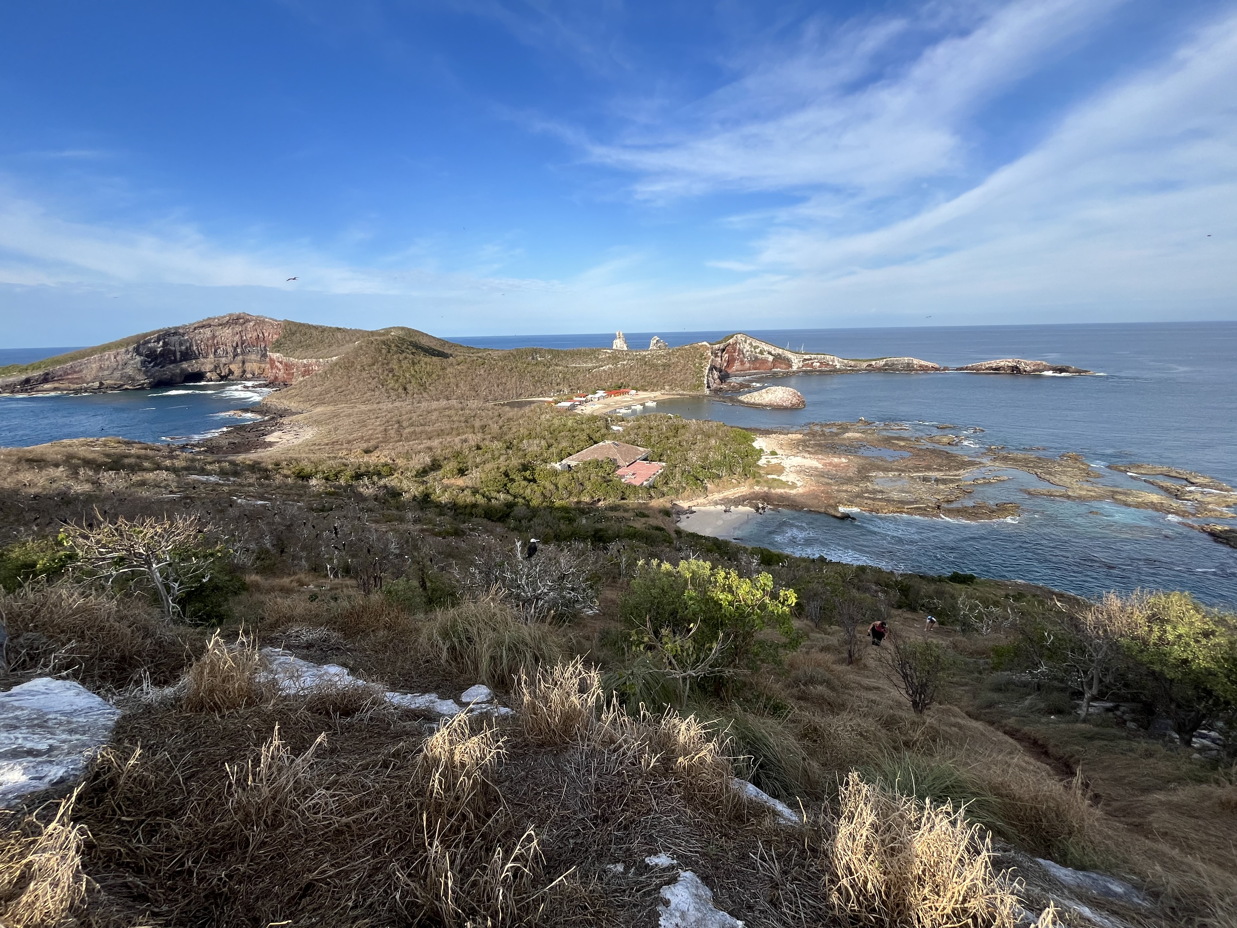 The remainder of our first day was spent relaxing on the boat after the overnight passage. The next day we dinghied to the southern anchorage to go ashore. The anchorage itself looked a bit scary with large swell wrapping around the southern end of the island and crashing into the rocks on the east side of the anchorage. There was a large motor yacht anchored here that seemed to be doing OK, but I didn’t envy them the swell. Conversely, the dinghy landing in the southern anchorage was very protected with no breaking waves, much better than that on the eastern side which had low breaking waves that scared us off from attempting to land there.