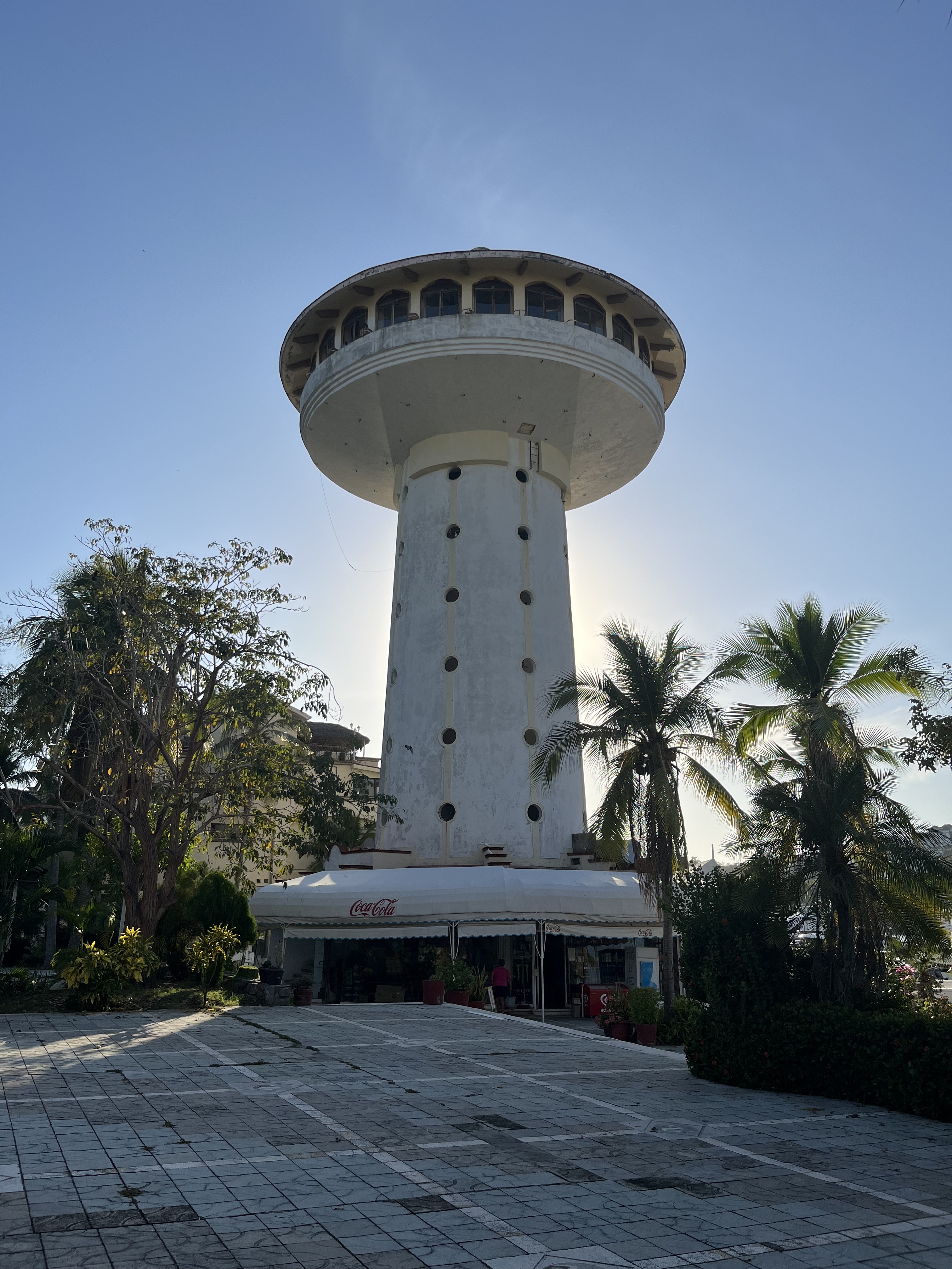 The iconic tower at the marina was not something you could go up into. The closer you got to it, the worse the thing looked. The base of the tower had a small grocery in it – we attempted unsuccessfully to get an ice cream there after dinner a couple of times, just missing their closing. We did eventually get in for a cool treat, just had to make a point of it since they closed so early in the evening.