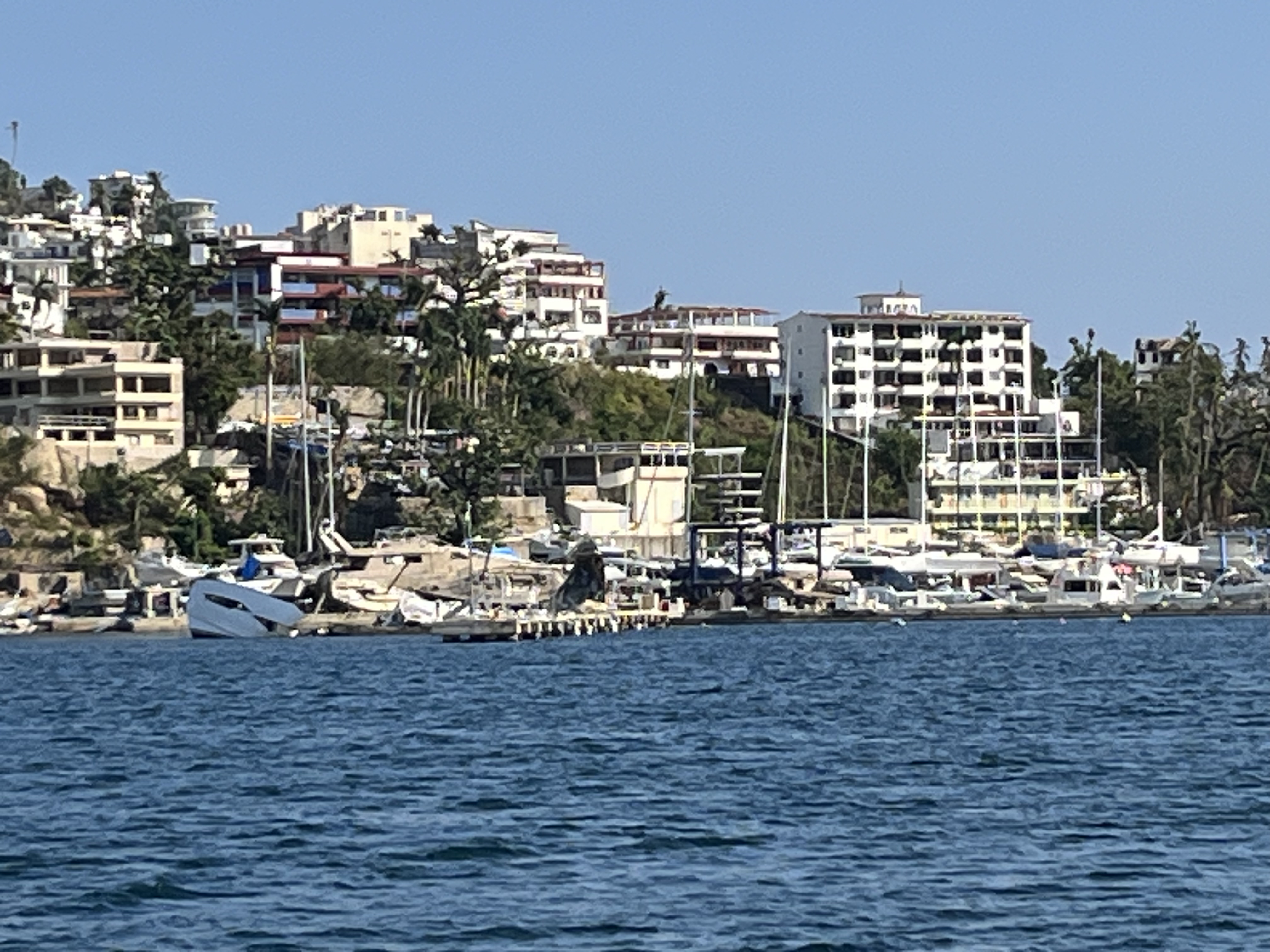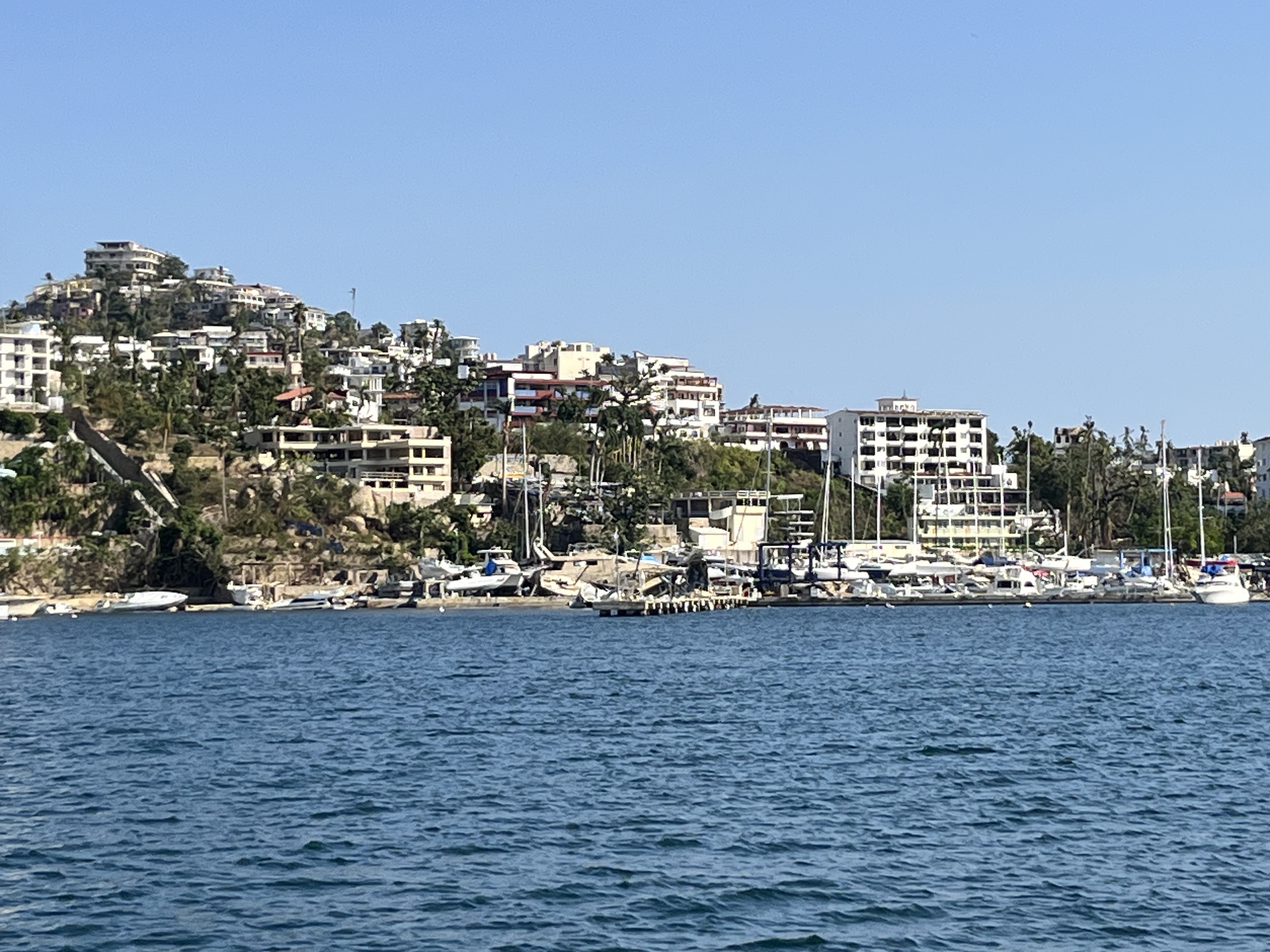 This was a nice stop to break up the long trip to Acapulco, and saved us from having to do an overnight passage. We did, however, rise at 4AM the next morning to get an early start. We had 77nm to go to get to Acapulco that day, and I wanted no chance that we’d get in after dark. The city had taken a direct hit from the category 5 Hurricane Otis at the end of October and conditions in the city and its bay were still evolving.