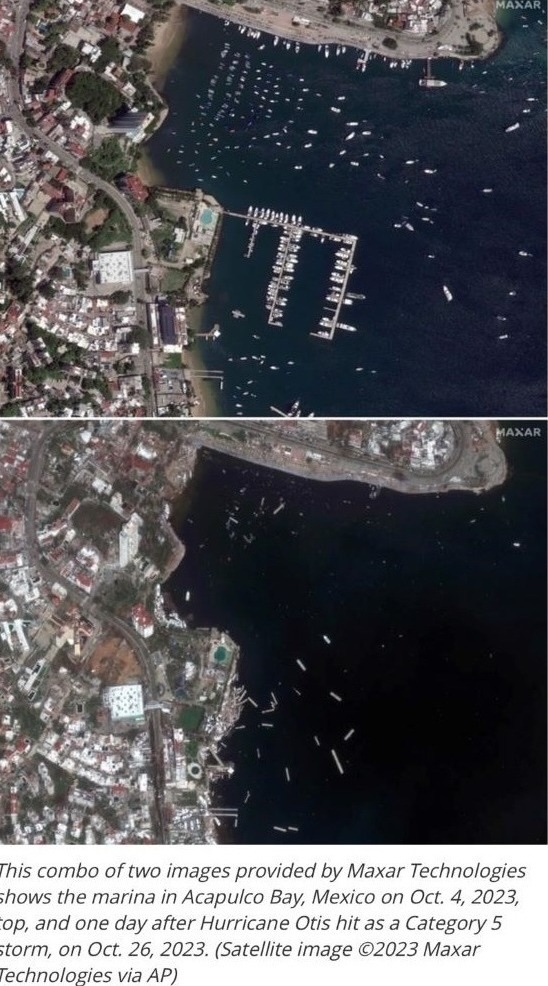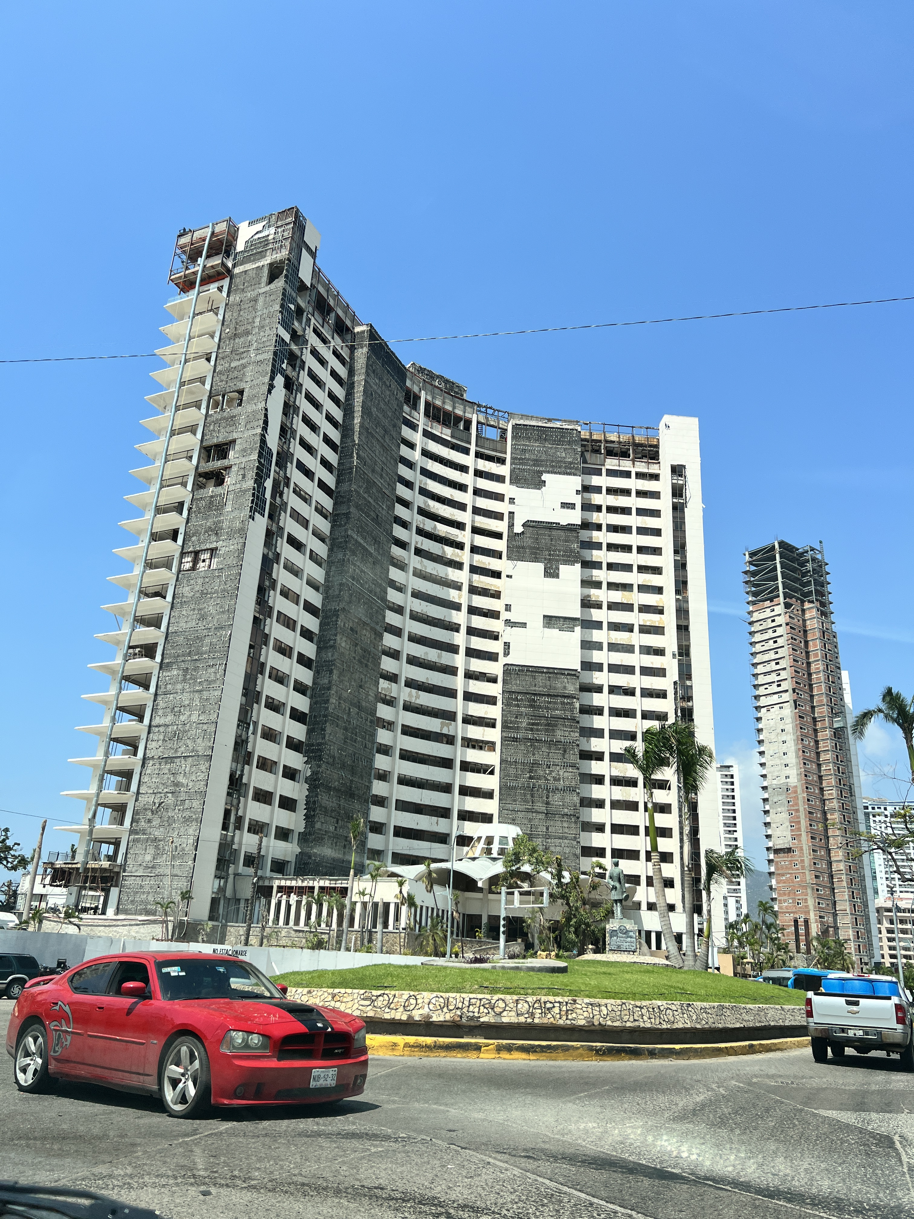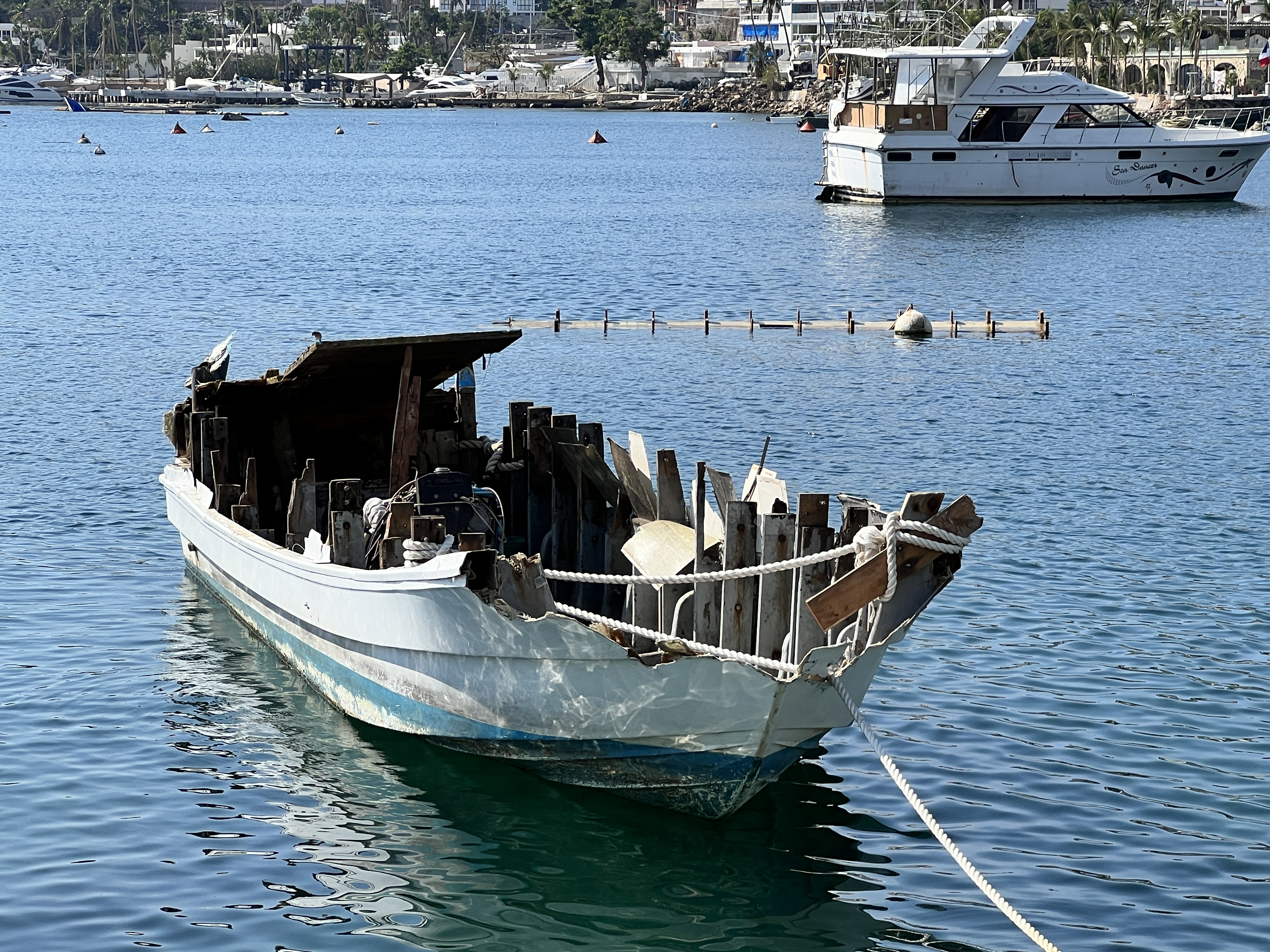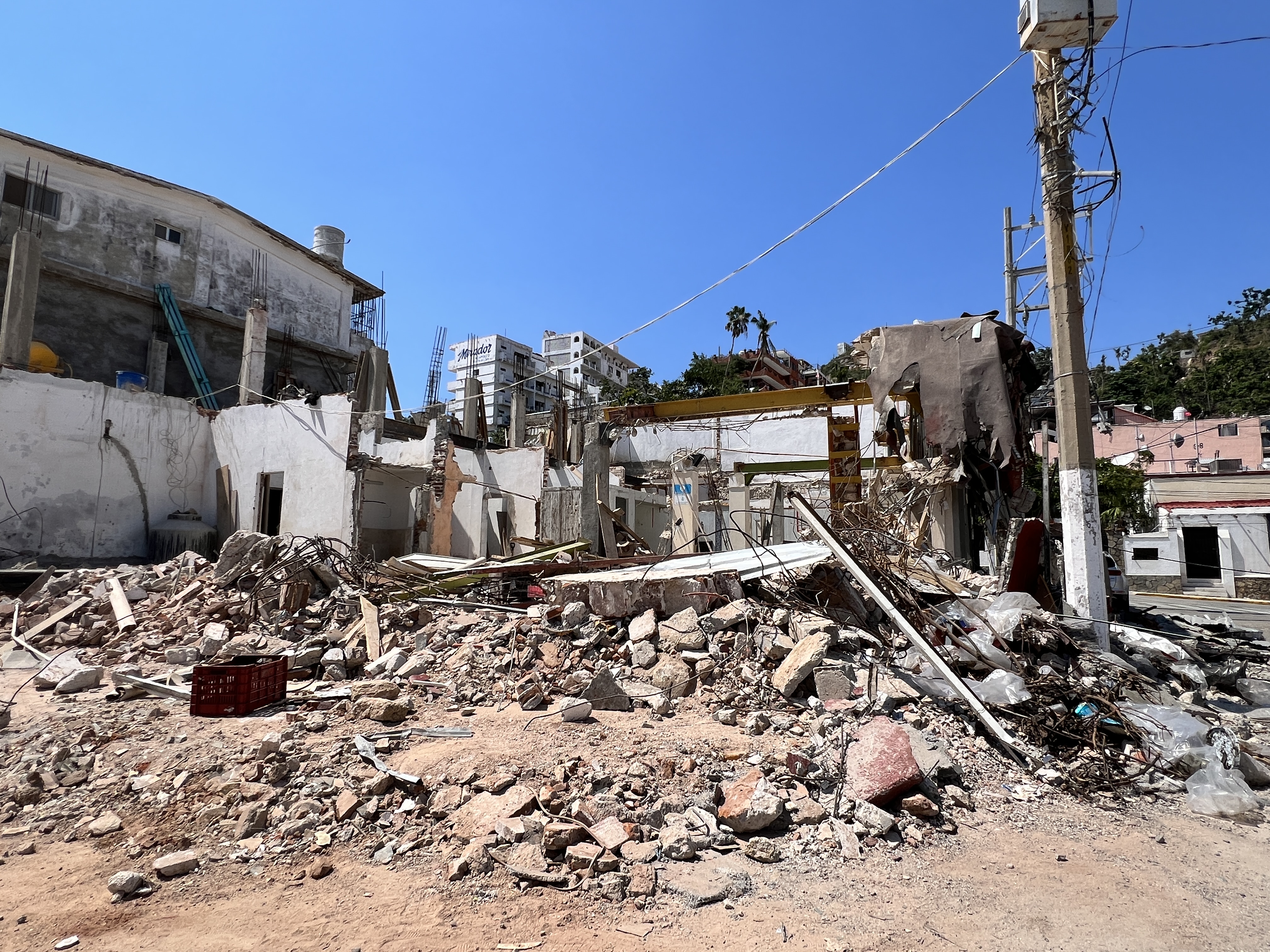 Prior to Otis, I had always planned on stopping in Acapulco on this leg of our trip. The Panama Posse had a great relationship with a local sailor named Vincente, who had a set of moorings and pangas in Acapulco Bay. Vincente’s experience with Otis was tragic. The local community initially thought that the storm would not reach an extreme intensity before passing by the city. Vincente and his family decided to take their boat out of the harbor to ride out the storm. Sadly, Otis rapidly intensified from a Category 1 to Category 5 storm as it approached Acapulco, with sustained winds of 165 mph. The storm slammed into the coast just west of the city and a series of 20 foot waves entered the harbor. Vincente’s boat was lost, and as he had sent his family below while he helmed the boat, his family was lost as well. Vincente was the only one to escape, washing ashore after his boat capsized. At the time of our visit his boat and the remains of his family members had still not been located.