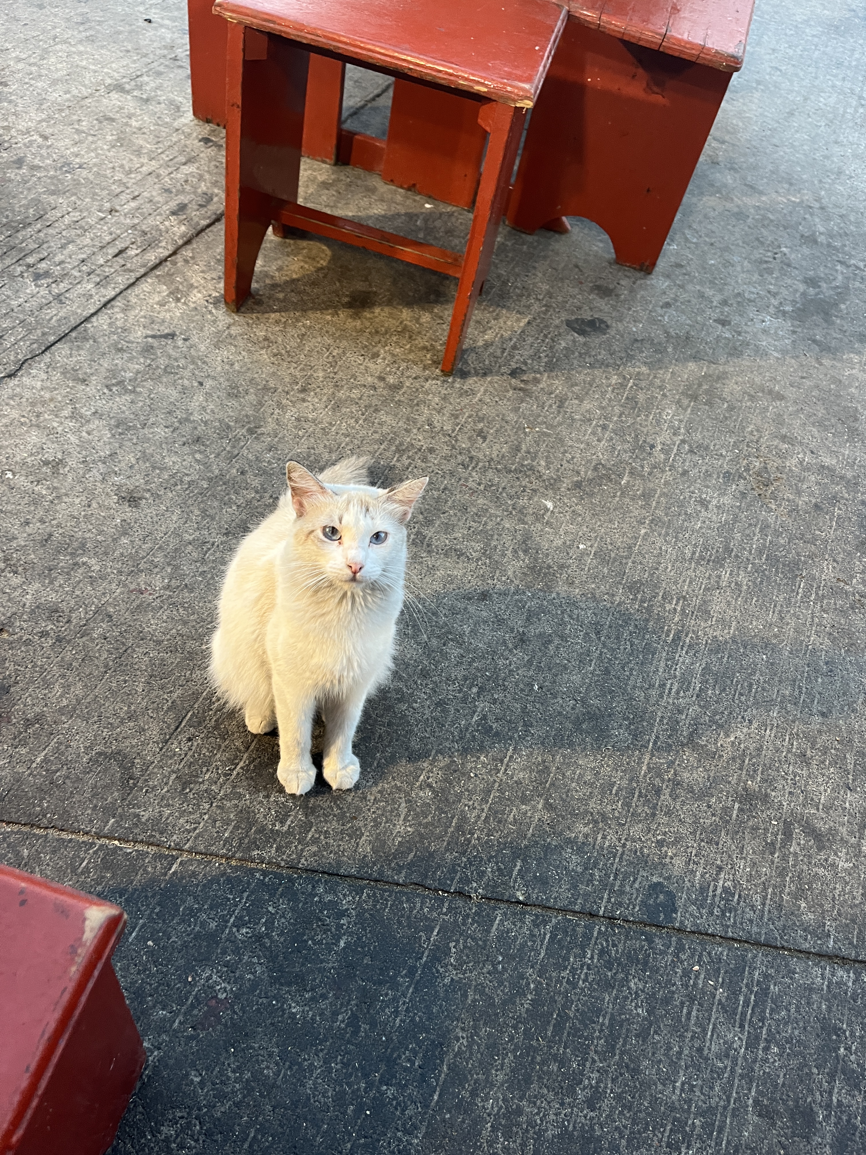 Just up the road was an open-air restaurant that was serving tamales, enchiladas, and other Mexican food. We took a table outside and settled in for an authentic meal. Wow, the tamales were outstanding. I had one for dinner, then we picked up several more to take back for Perception’s freezer. Grace made friends with a local cat by giving it some of her taco meat. Delicious and well worth the trip ashore. We should do this more often!